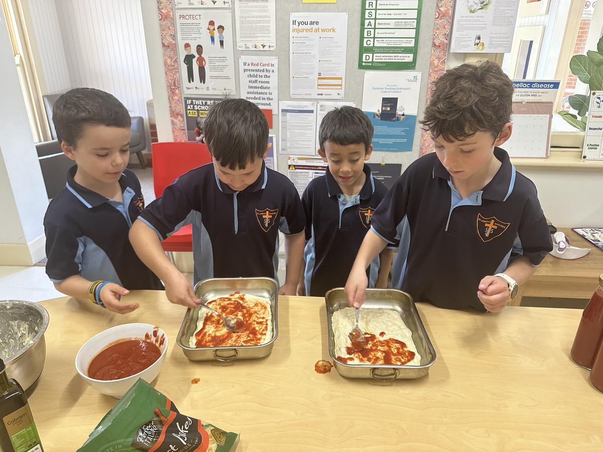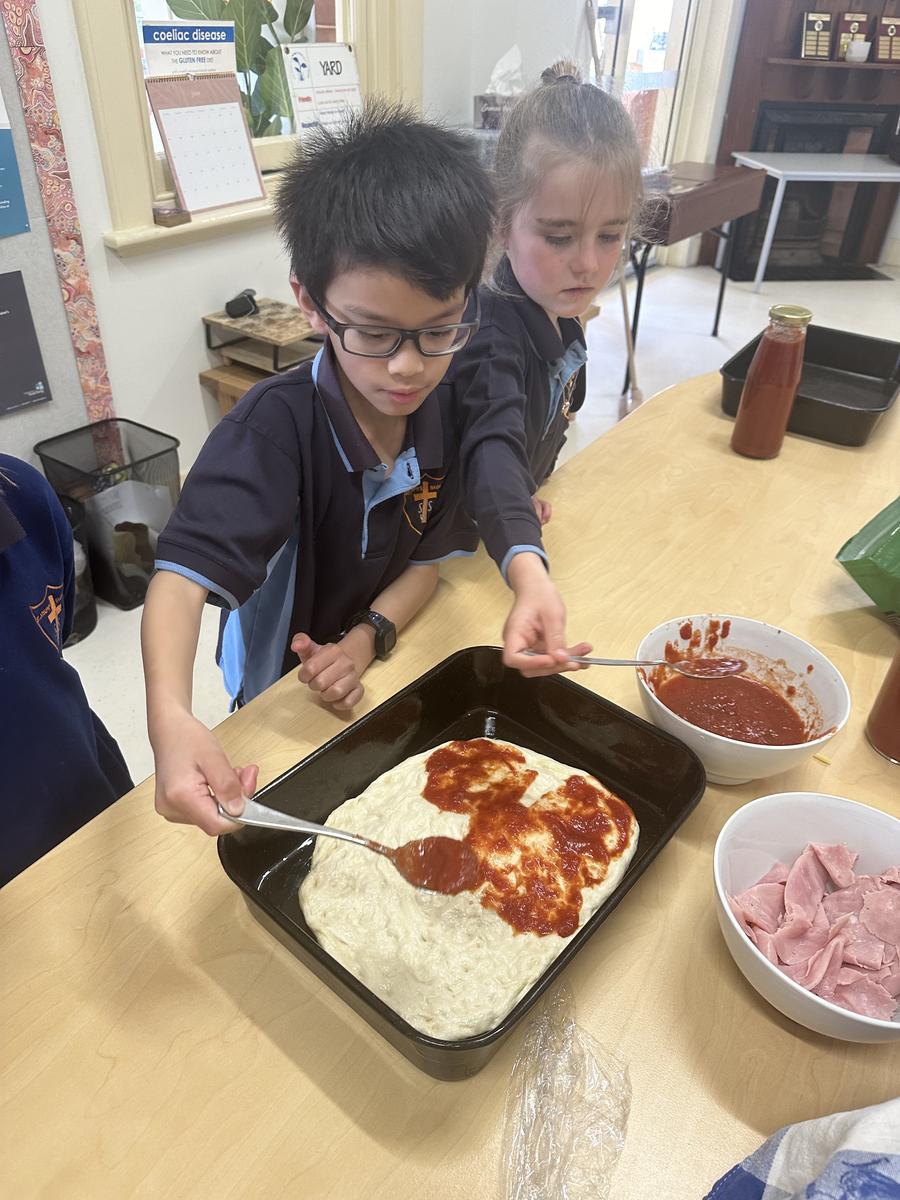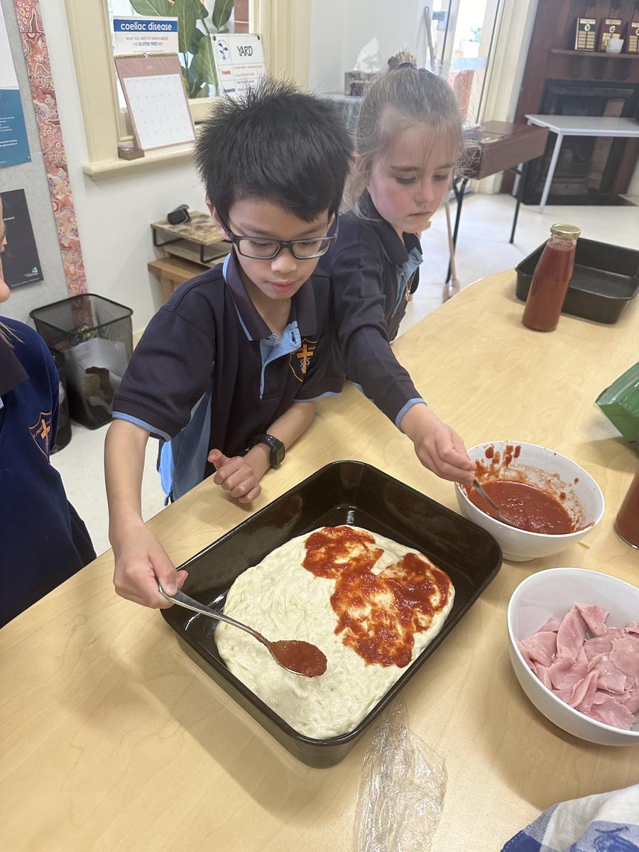 To end our wonderful term together, we made pizzas. Students worked in groups to follow the pizza dough recipe, demonstrating a high level of patience and the ability to evenly share tasks among all group members.