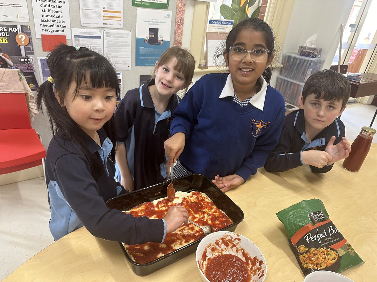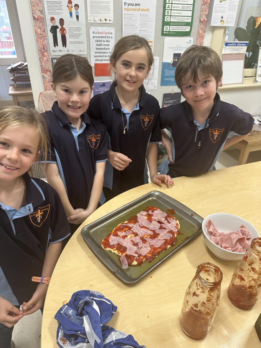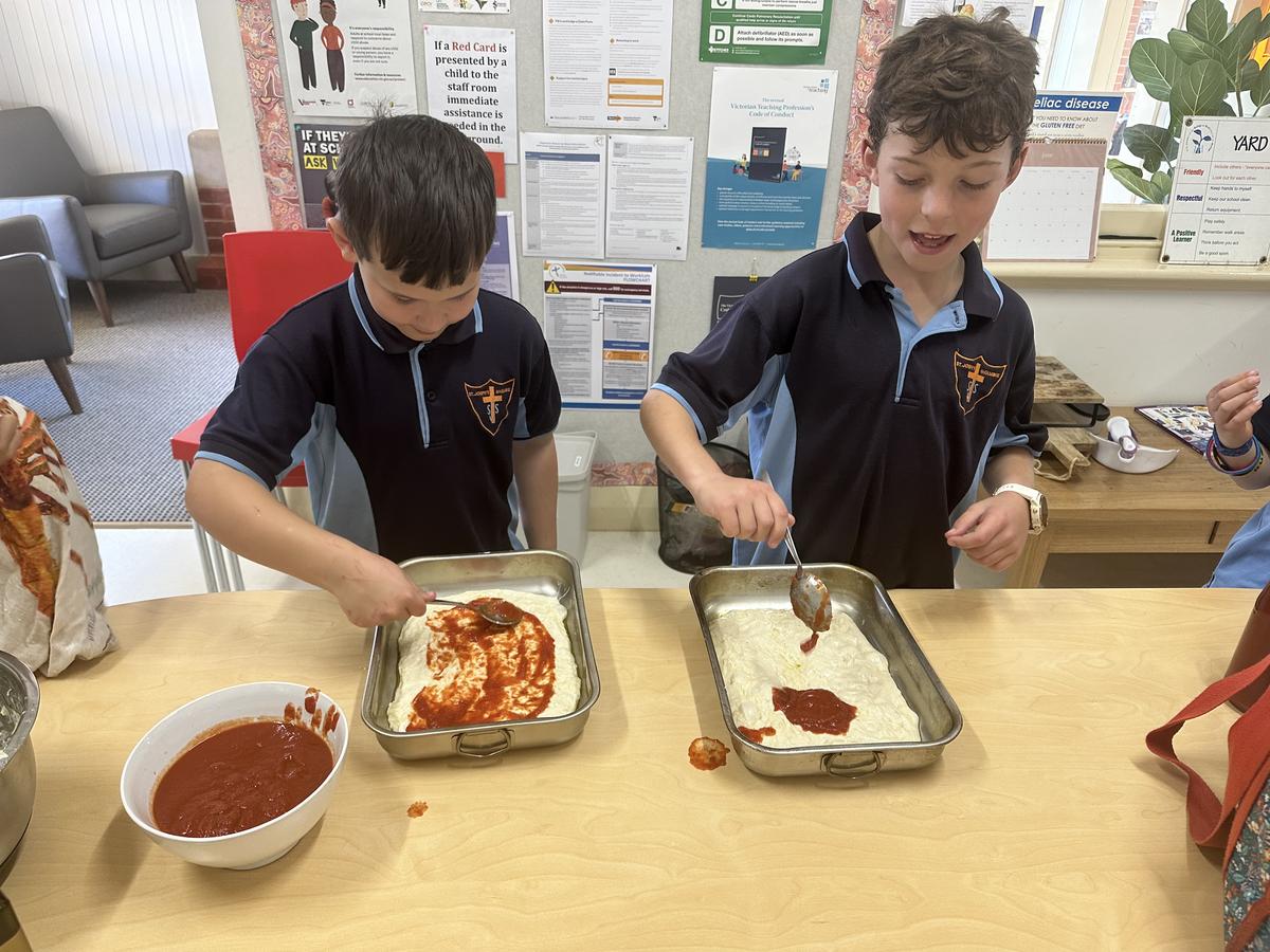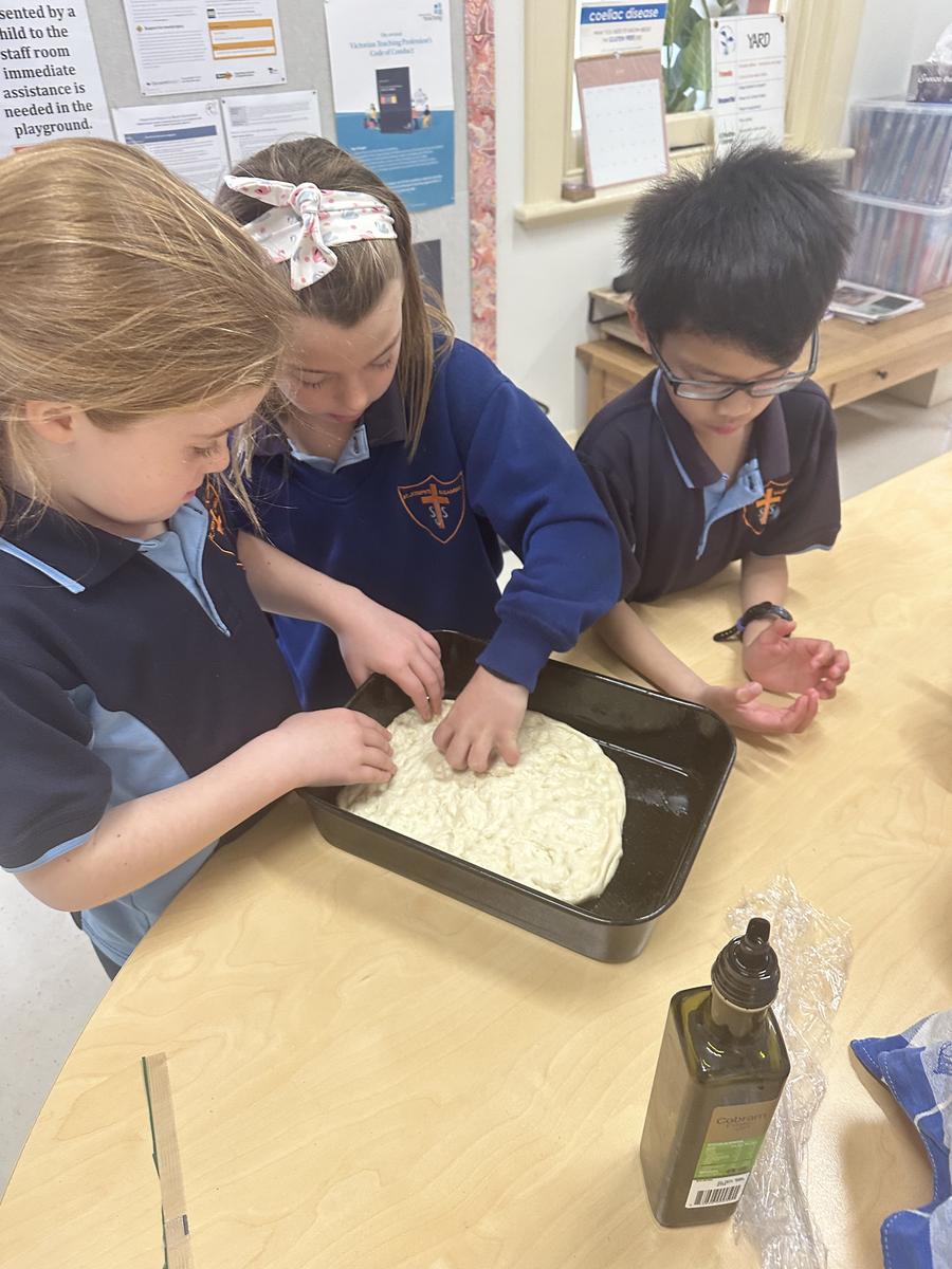 To end our wonderful term together, we made pizzas. Students worked in groups to follow the pizza dough recipe, demonstrating a high level of patience and the ability to evenly share tasks among all group members.