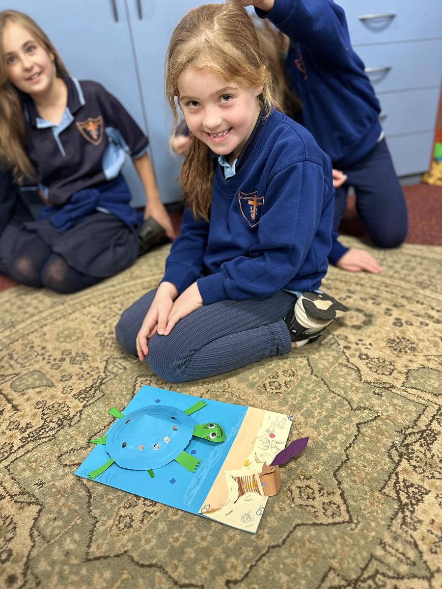 In our writing tasks, we focused on adjectives (describing words) to enhance the detail in our pieces. Students read "Tiddler" and "The Rainbow Fish" to identify describing words used in these texts. Using their turtle from Jane’s focus day as inspiration, students wrote adjectives describing the features and personality of their turtle. To conclude our writing for the term students began writing a short narrative involving their turtle, incorporating the adjectives they had chosen.