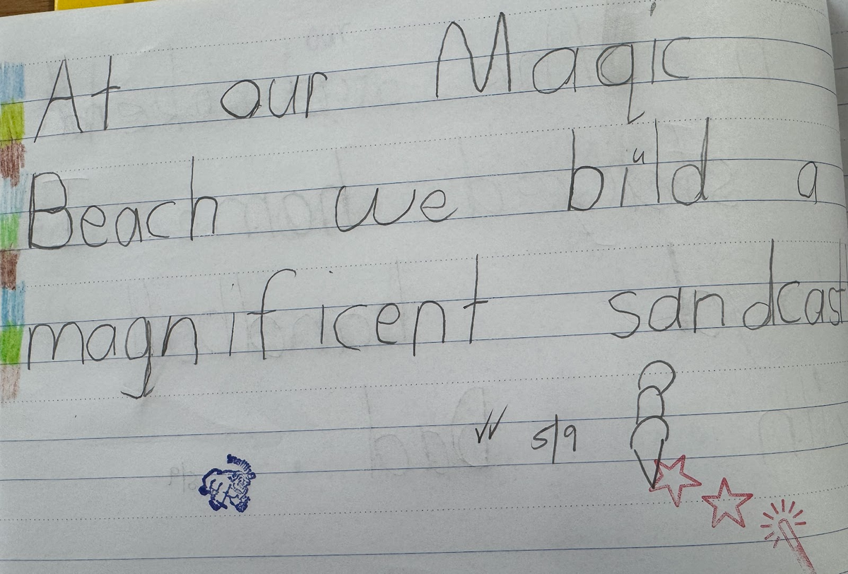 We are writing about our weekends, Nursery Rhymes and the Magic Beach.