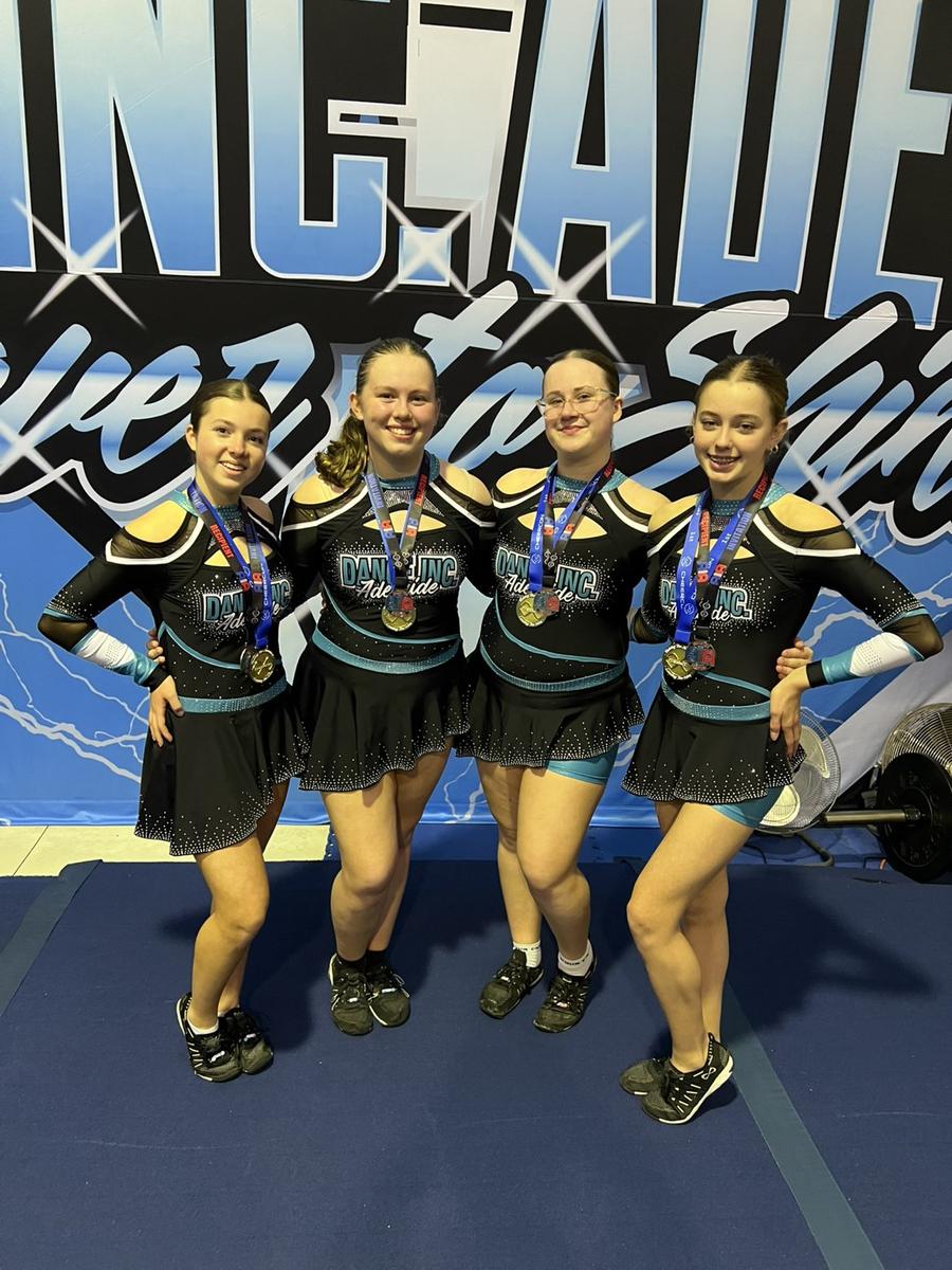 Recently, Olivia Carpenter, Charlotte Pond, Ruby Stam, Libby Hegarty and Aida De Flart, from Dance Inc Adelaide, Dance and Cheerleading, competed at the Cheercon State Championships at the Adelaide Entertainment Centre.