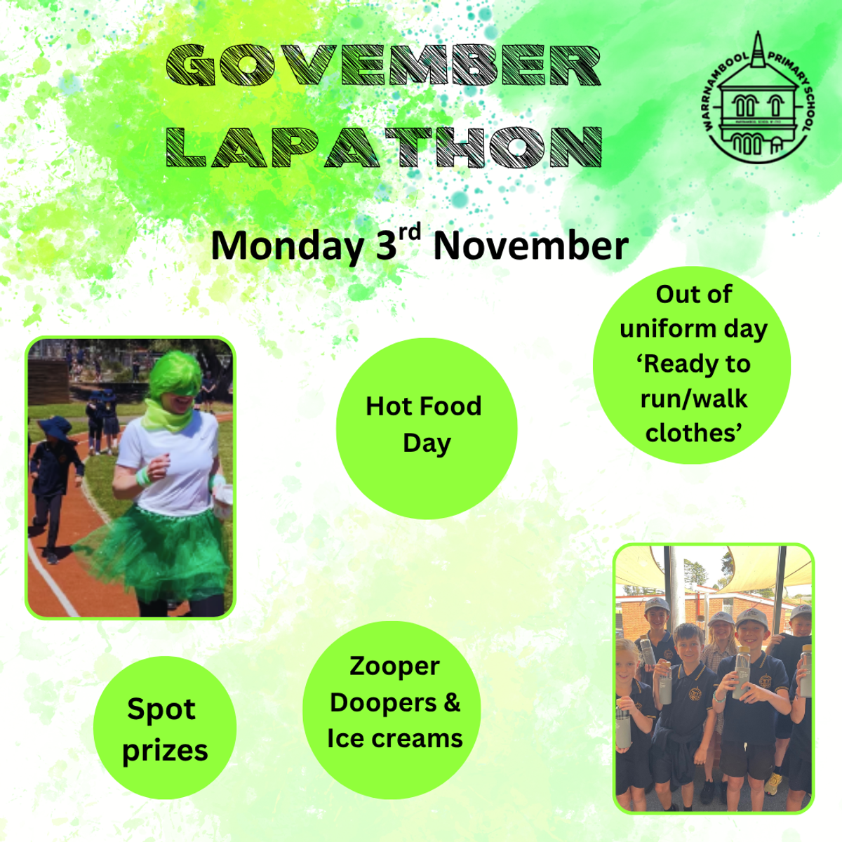 Get ready to move! Students can come out of uniform in their best ready-to-run or walk clothes as we kick off our Govember Lapathon!