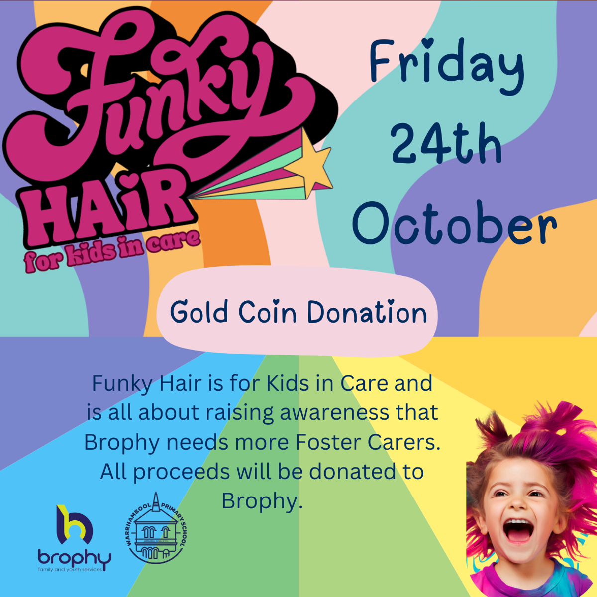 Come to school with your funkiest, wildest, most colourful hair and bring a gold coin donation.