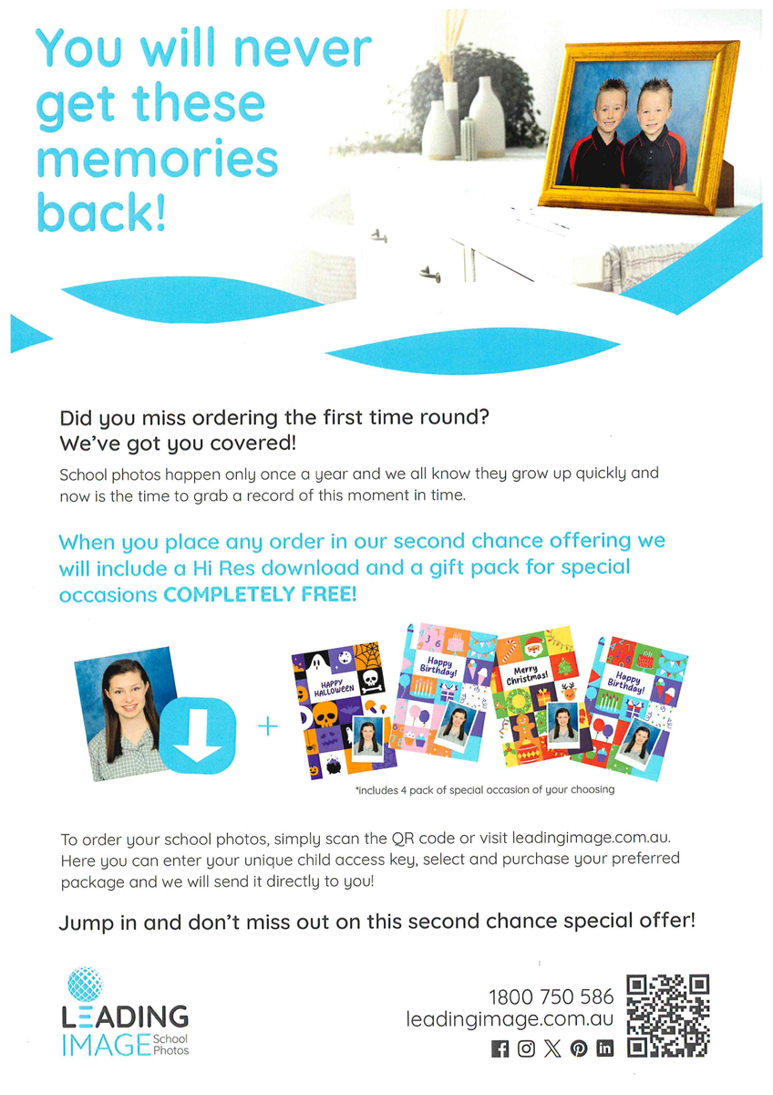 If you missed ordering your school photos earlier in the year, it’s not too late! Families can still place orders directly through Leading Image.