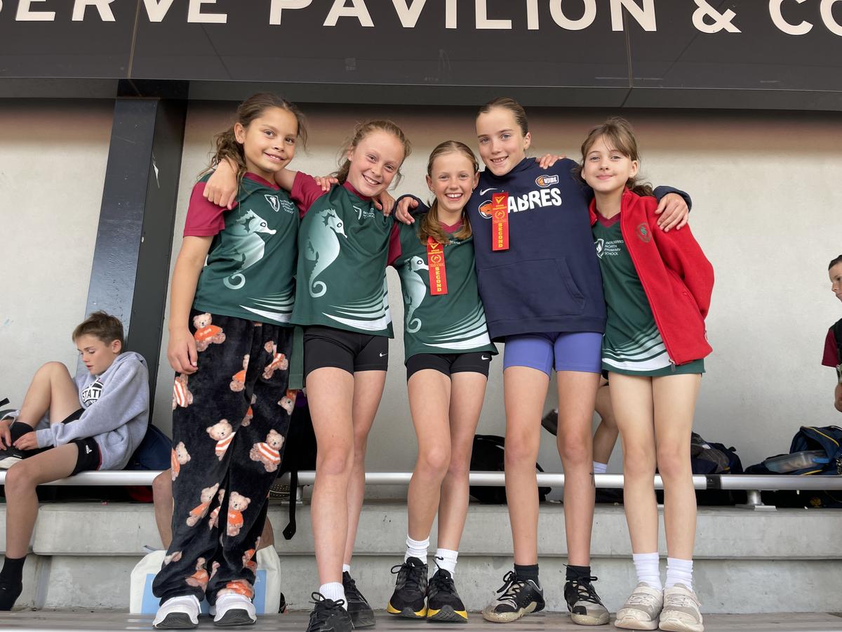 Yr 5 Girls Relay (Sophie D, Abby L, Aleia R, Sienna M) – 8th place running in 1:02.71