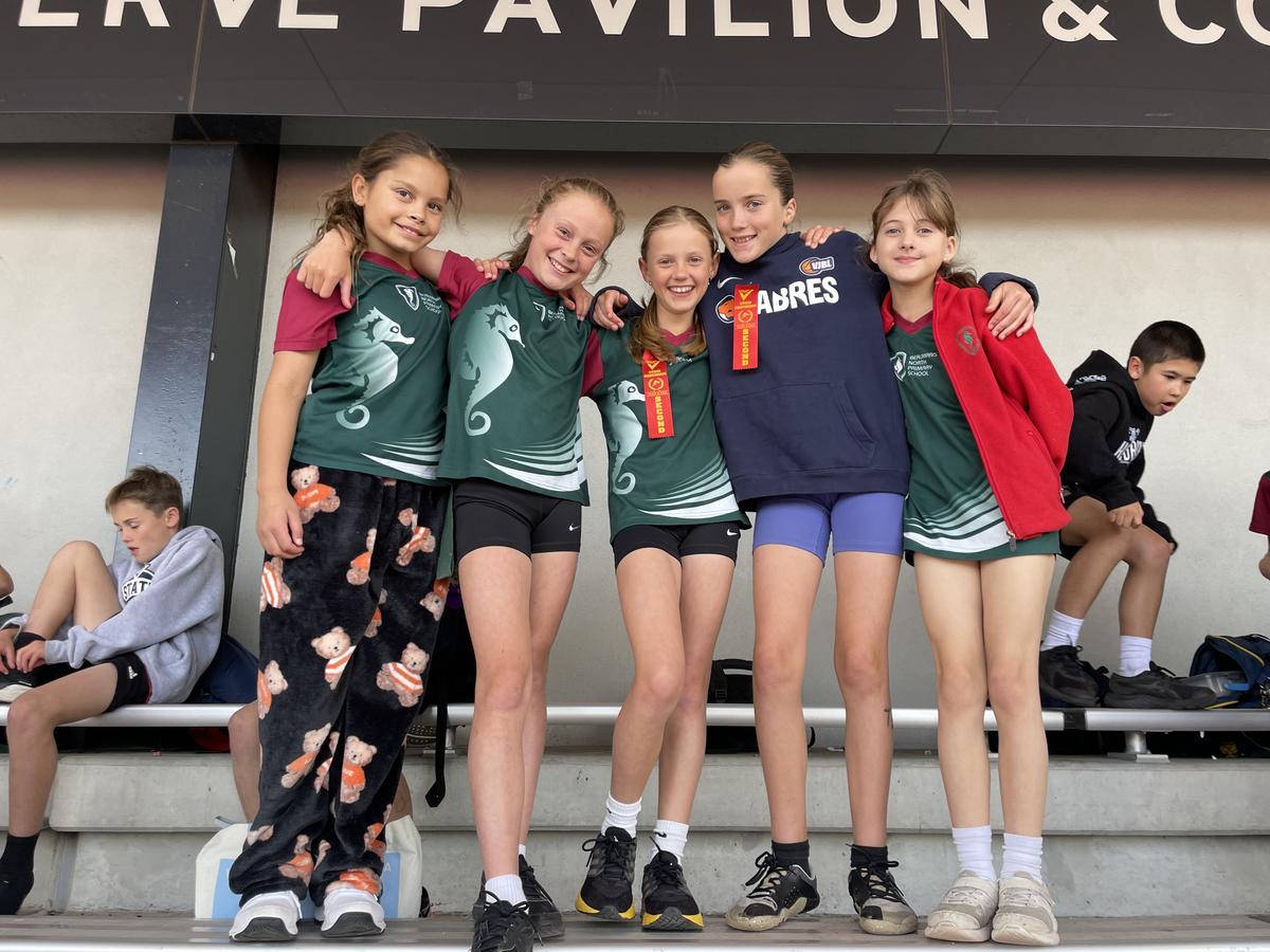 Year 6 Girls Relay (Celeste C, Sophie T, Scarlett C, Lexie B)- 4th place running in 59.64s