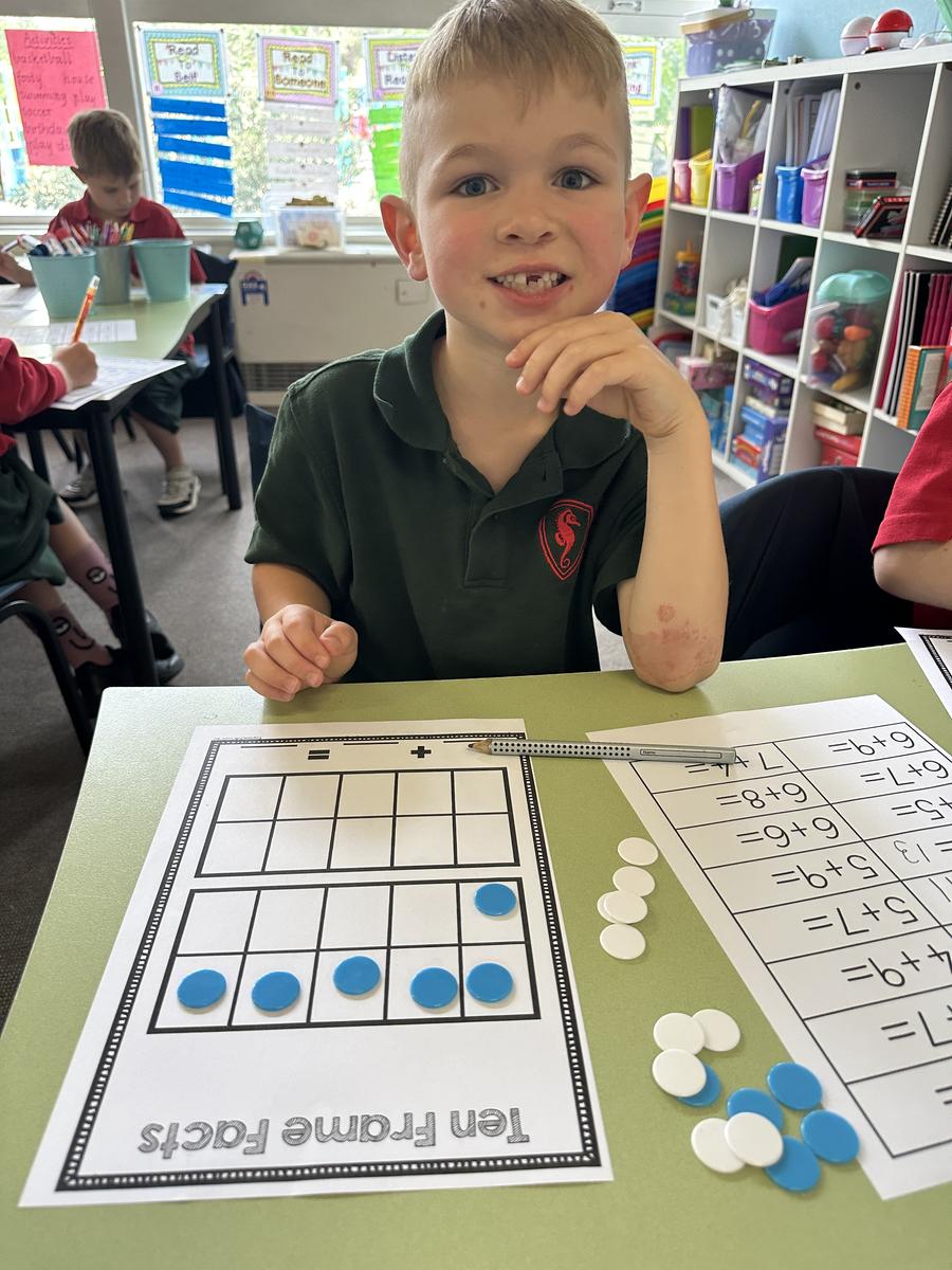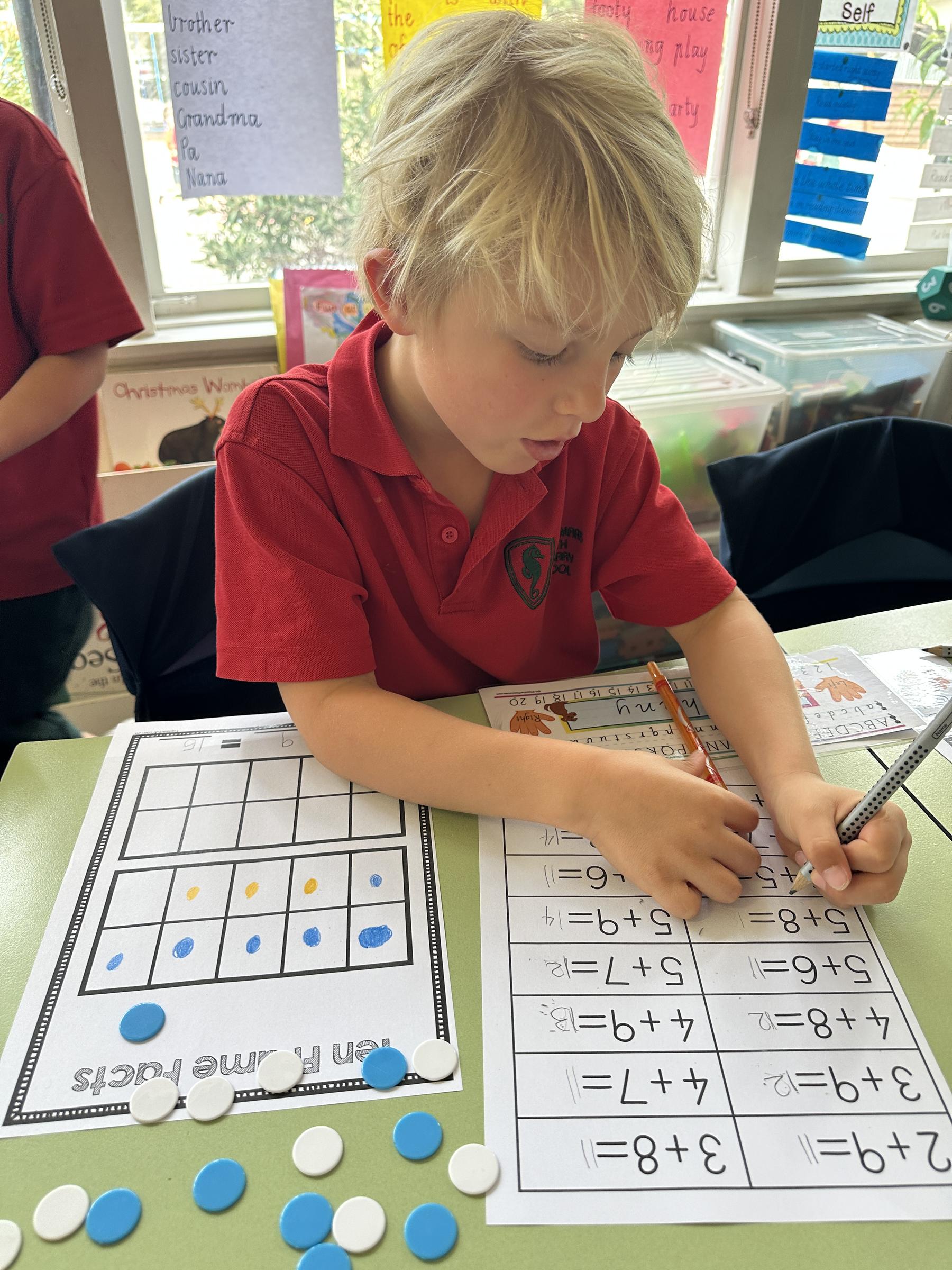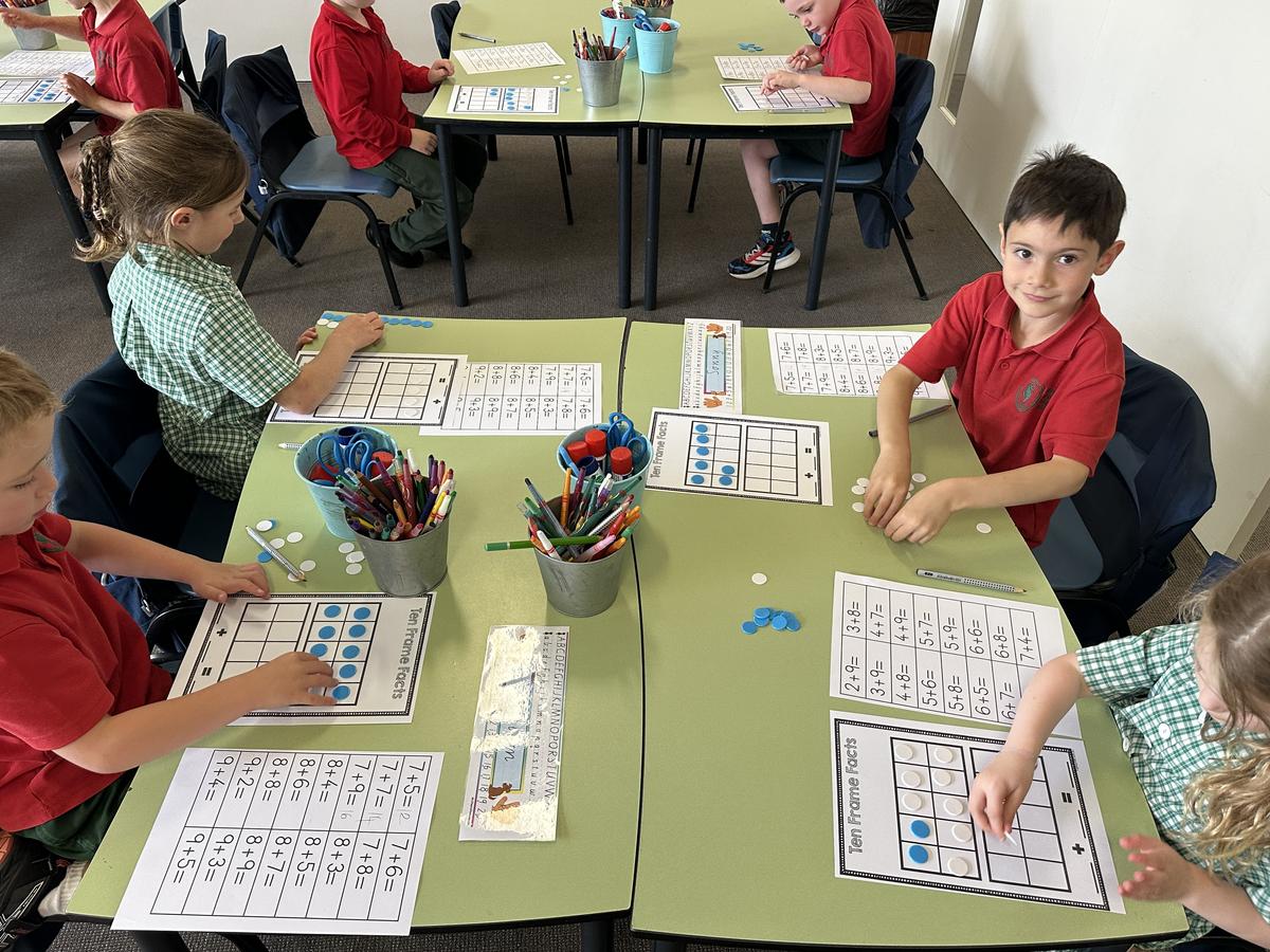 This week in Maths, the Prep students revisited addition using hands-on tools like counters and ten frames. These visual aids helped the children represent addition problems clearly and made it easier for them to find the correct answers. By physically moving the counters and filling the ten frames, the students could see how numbers combine, building a strong foundation for their number sense.