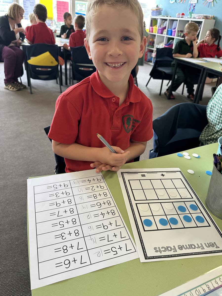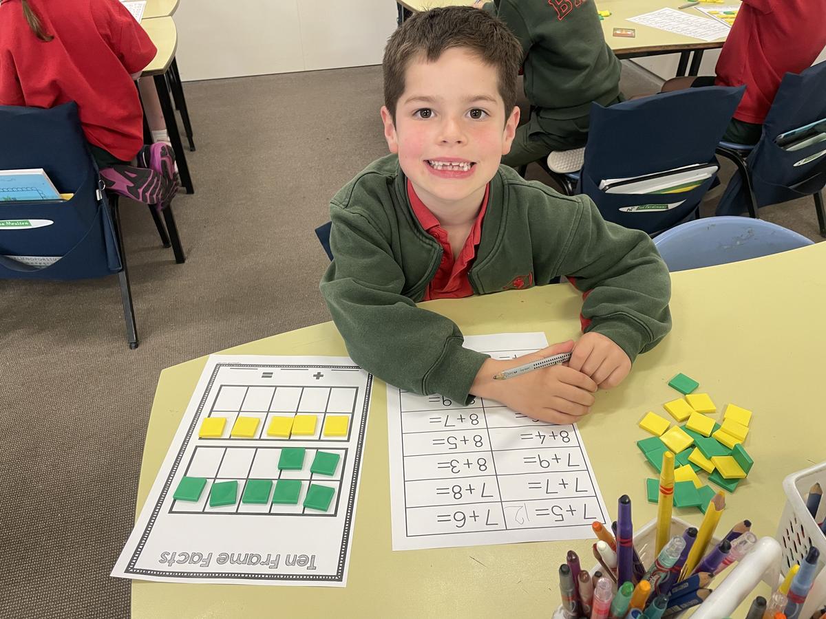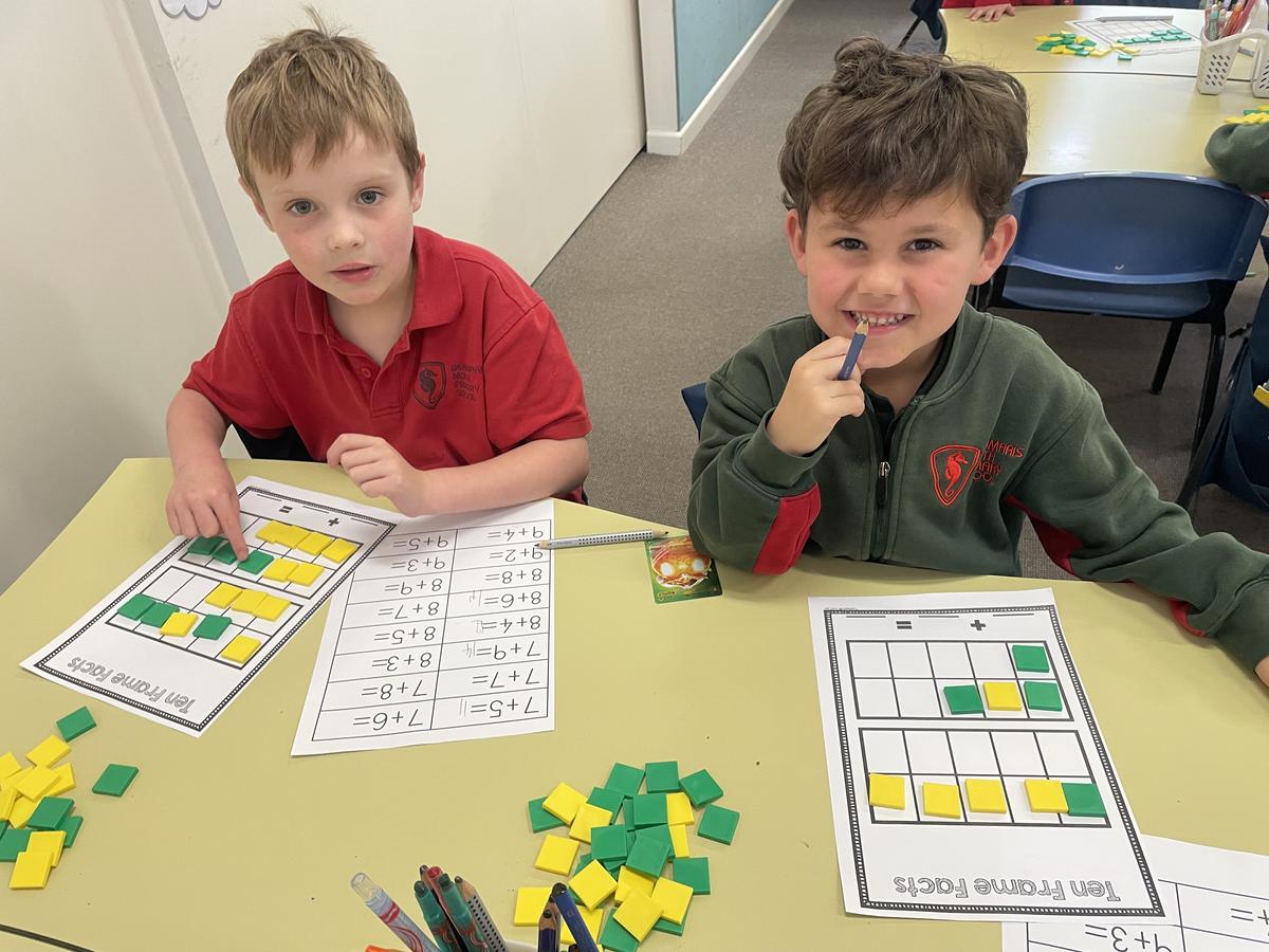 This week in Maths, the Prep students revisited addition using hands-on tools like counters and ten frames. These visual aids helped the children represent addition problems clearly and made it easier for them to find the correct answers. By physically moving the counters and filling the ten frames, the students could see how numbers combine, building a strong foundation for their number sense.