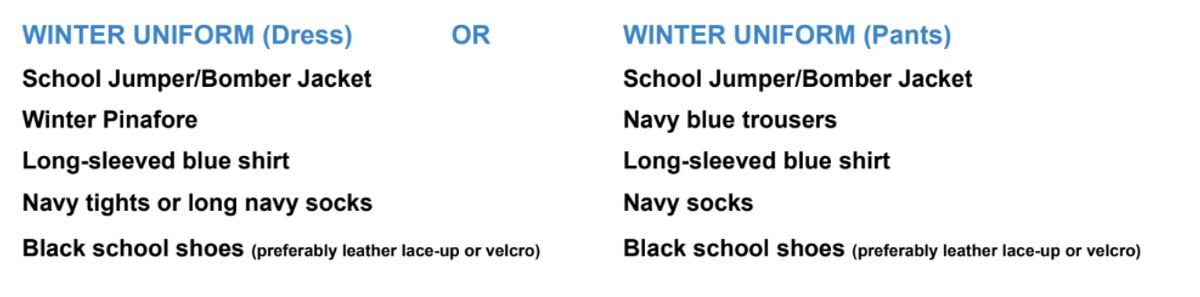 Please note that all students should now have transitioned to the winter uniform. We understand that some families have shared that their child prefers to wear shorts year-round. This is acceptable, provided the shorts are the official, tailored school shorts.