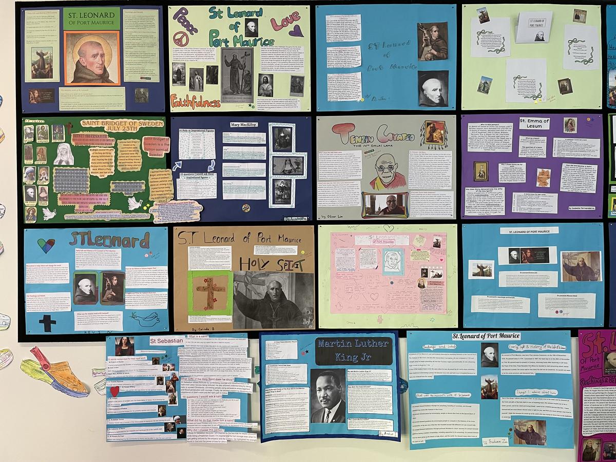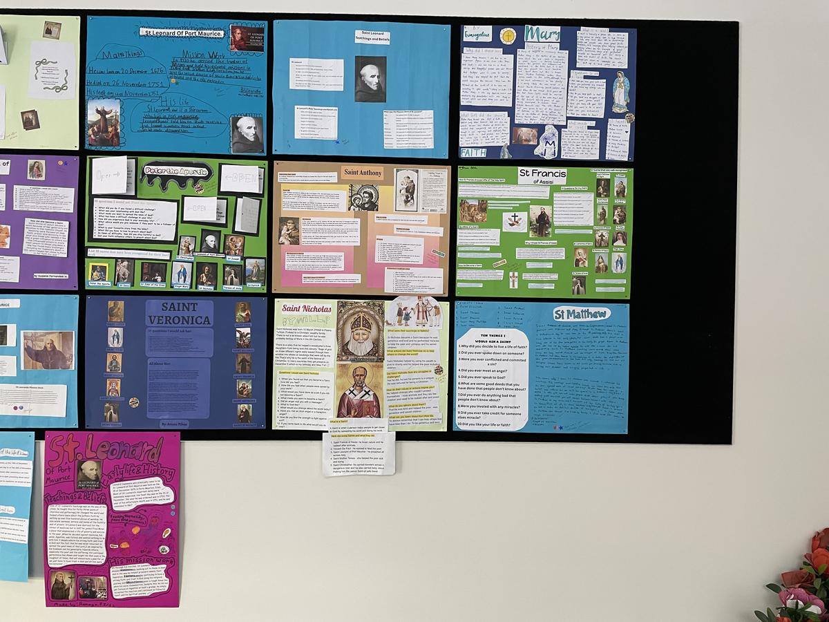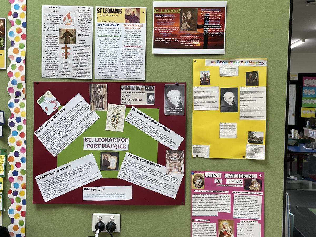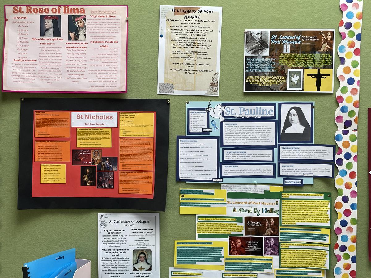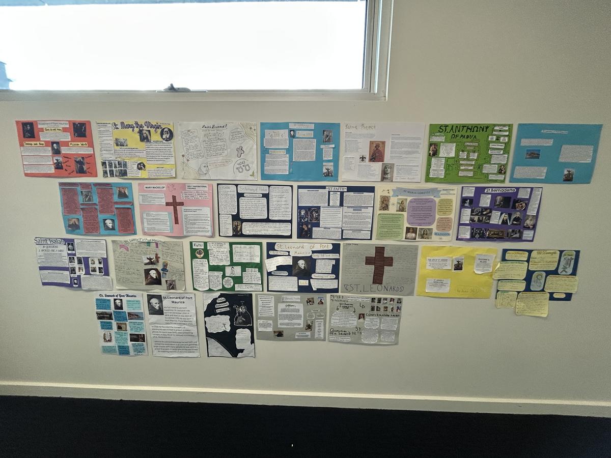 In preparation for our Confirmation, the Yr 6 students researched a saint that inspired them and they would take this name as their saint name during Confirmation. We had to complete a saint project about the saint we chose, our research was presented on a poster and had the life story of that saint, why we chose them and what gifts of the Holy Spirit they showed in their life. All our posters are displayed in the 5/6 corridors for everyone to see.