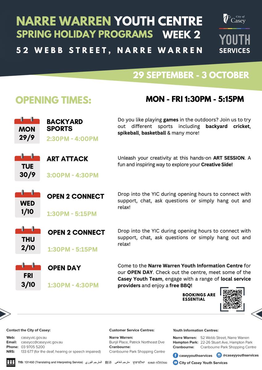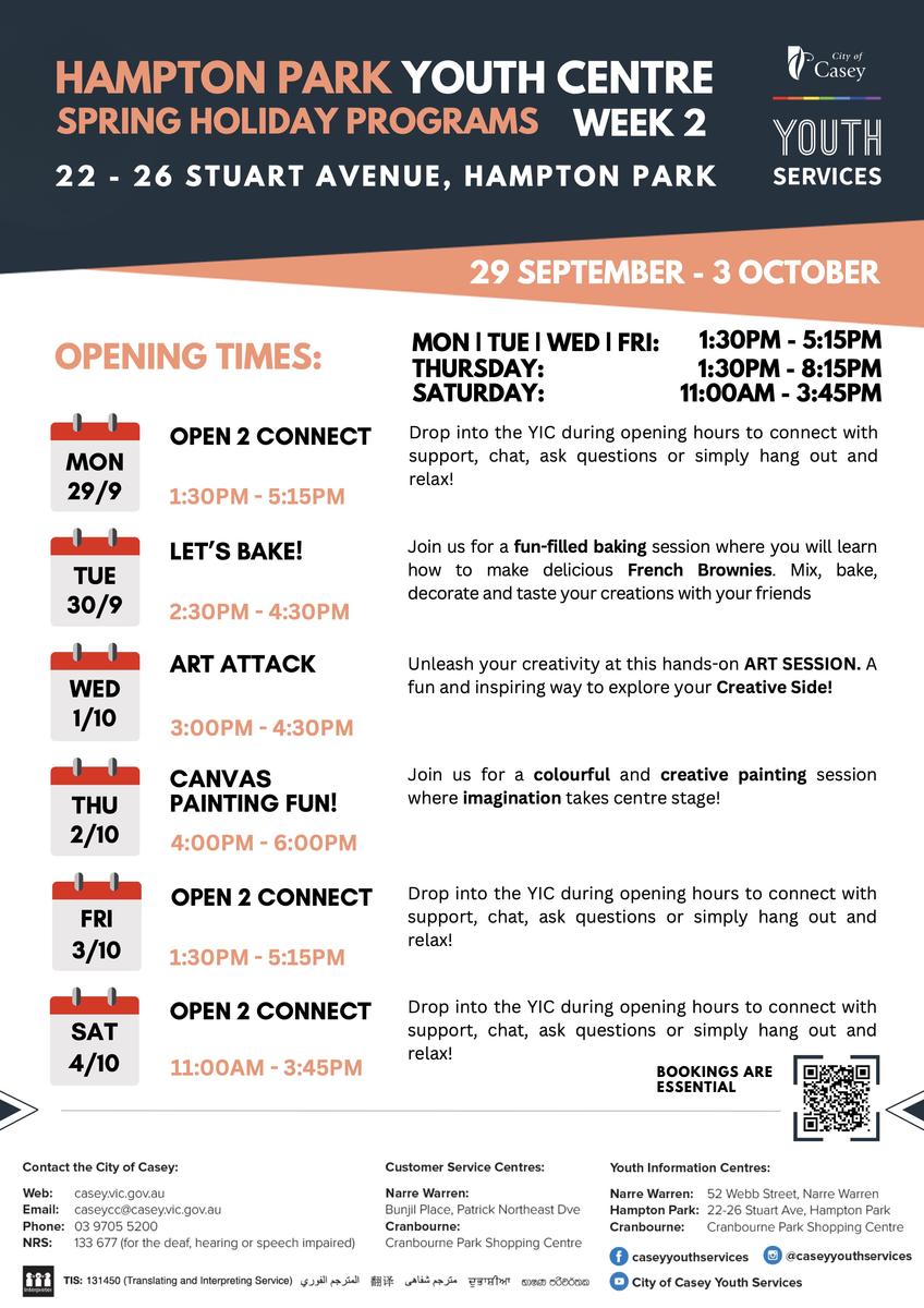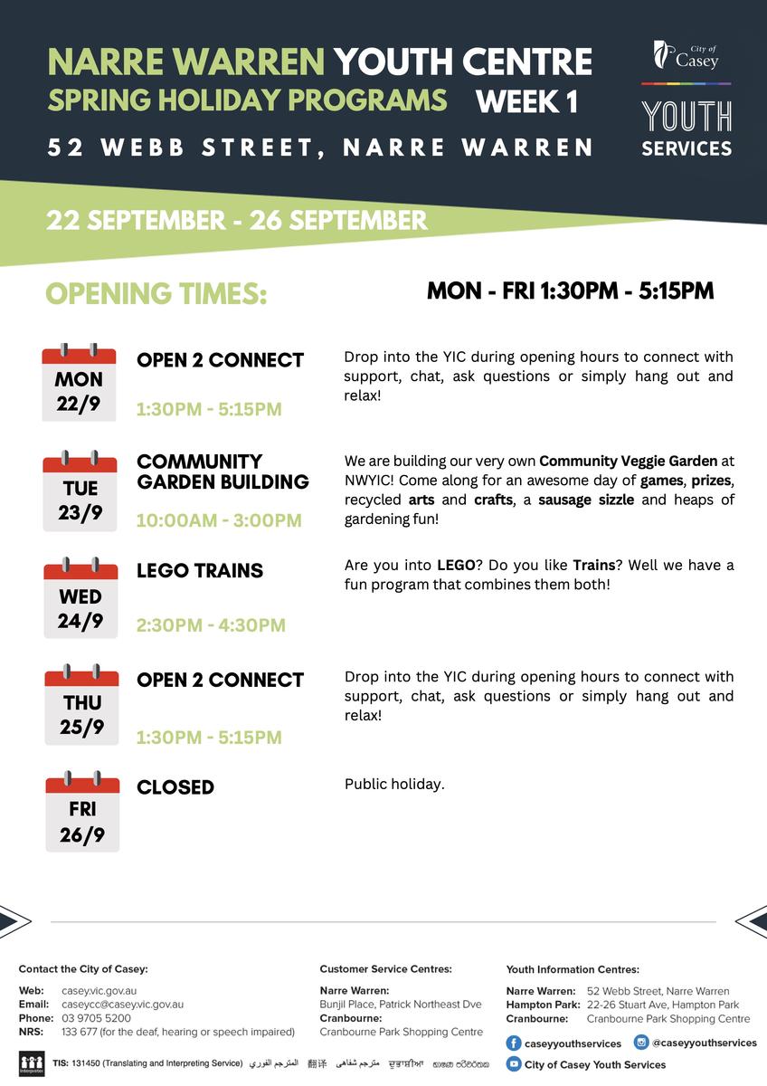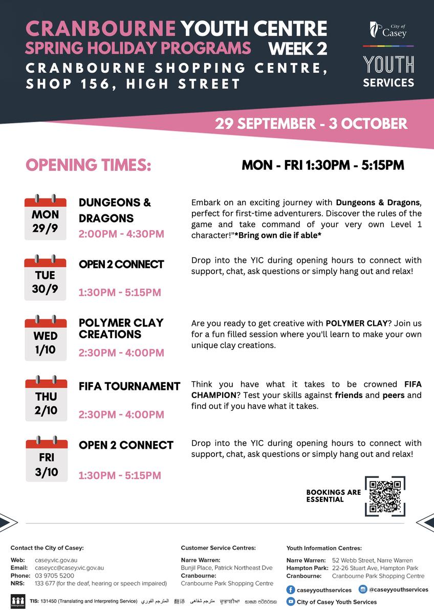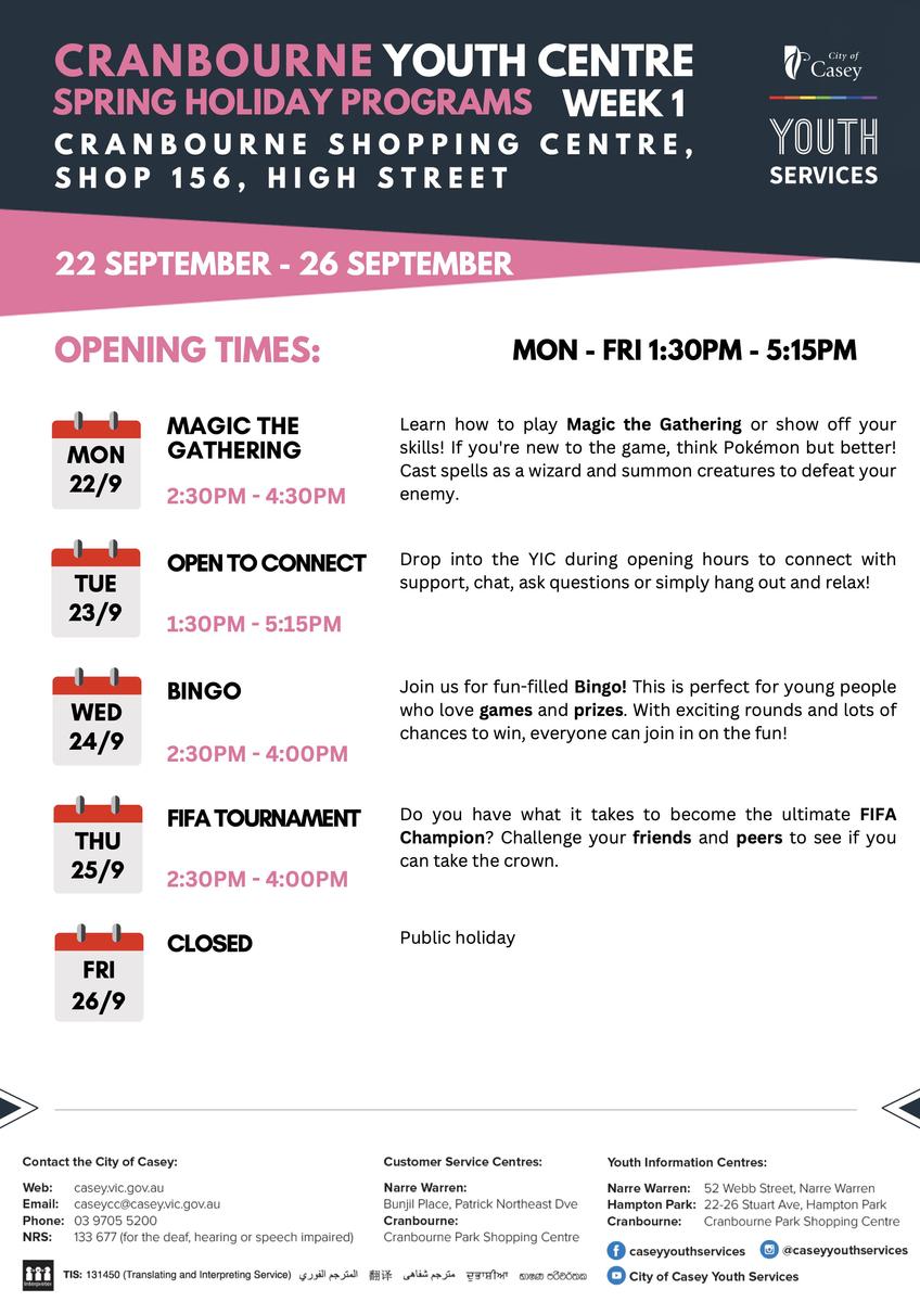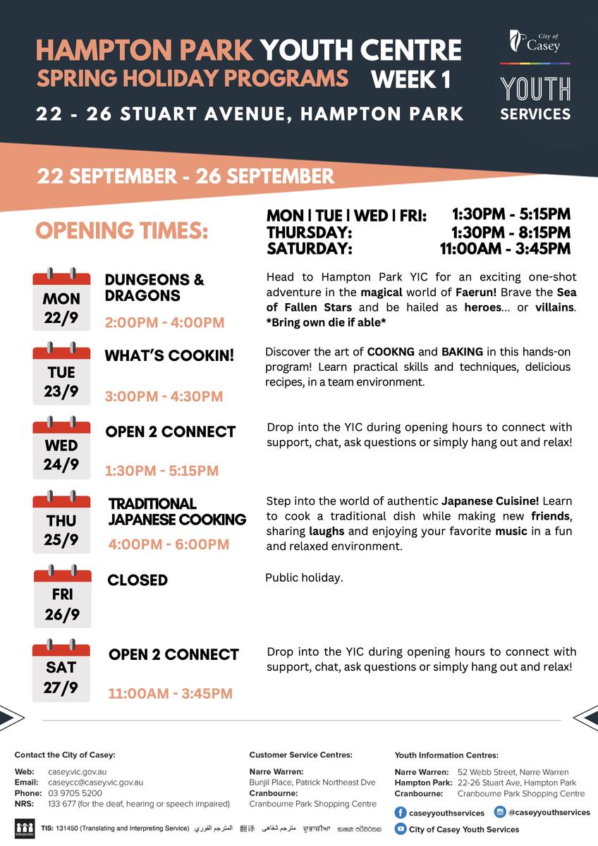 We love hearing from local community organisations about the great options for School Holiday fun they host for local Young People – this Term, the City of Casey Youth Services, Melbourne Storm, and Dandenong Youth Services have provided! Check out some of their activities below. Register Quick! Spots Fill up Fast!: