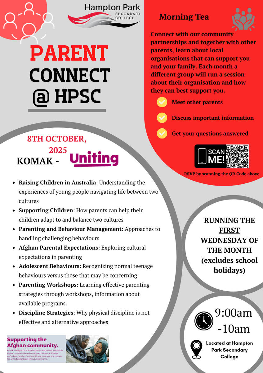 English classes for parents only have moved to Friday at 9:00am here at the College!