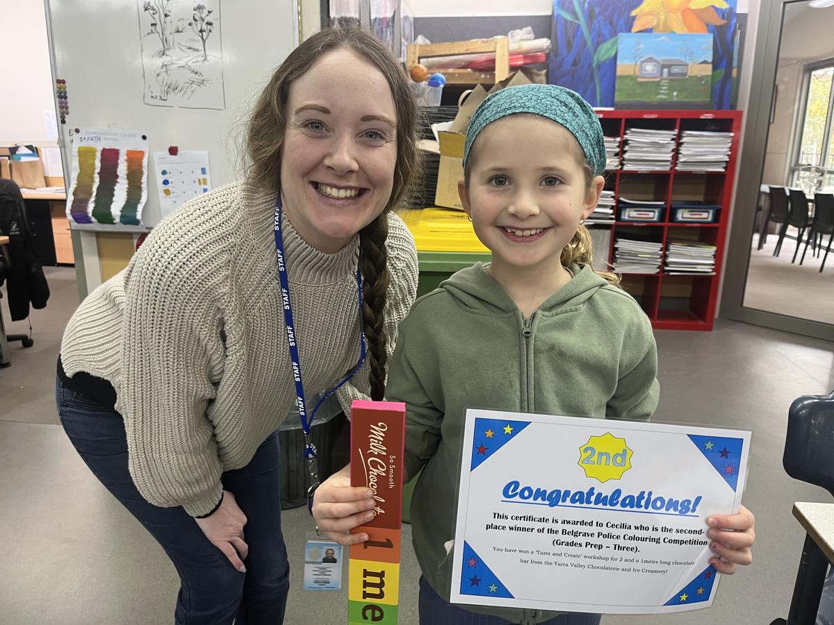 Cecilia M (pictured) was awarded 2nd place in the Prep – Year 3 division. Cece was gifted a voucher to the Yarra Valley Chocolaterie for a create and taste workshop along with a 1 metre long chocolate bar! She has also been invited to a tour of the Belgrave Police Station.