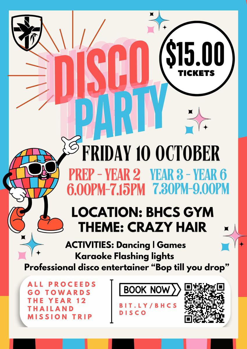 Get ready for a night of fun! Students are invited to our Primary Disco Night, hosted by Bop till you Drop, with dancing, games, karaoke and crazy hairstyles.