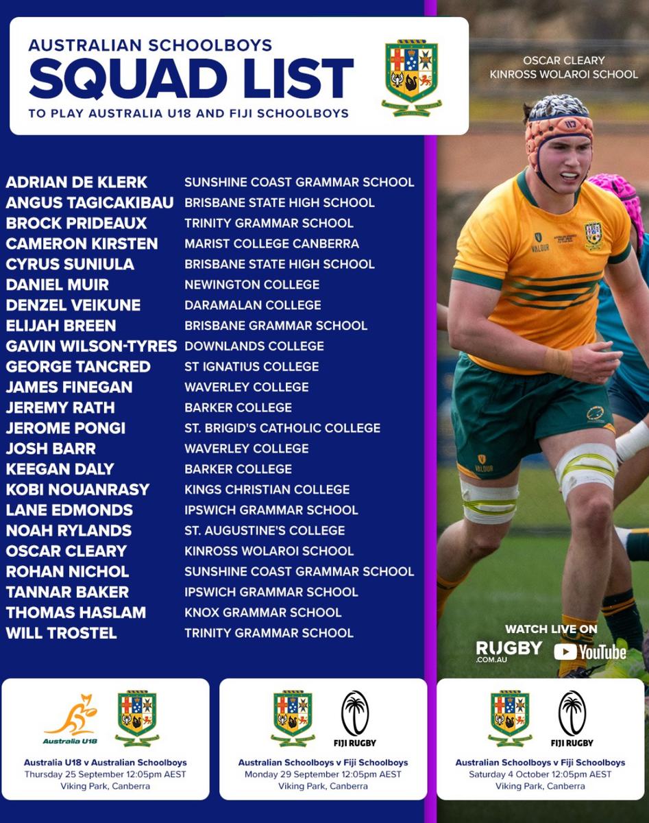 Huge congratulations to Oscar Cleary on his selection in the 2025 Australian Schoolboys Rugby squad. A back to back honour, this marks Oscar's second consecutive year in the side - a testament to his talent, hard work and leadership. An incredible achievement that makes the whole KWS Community proud and we look forward to following his journey in the green and gold.