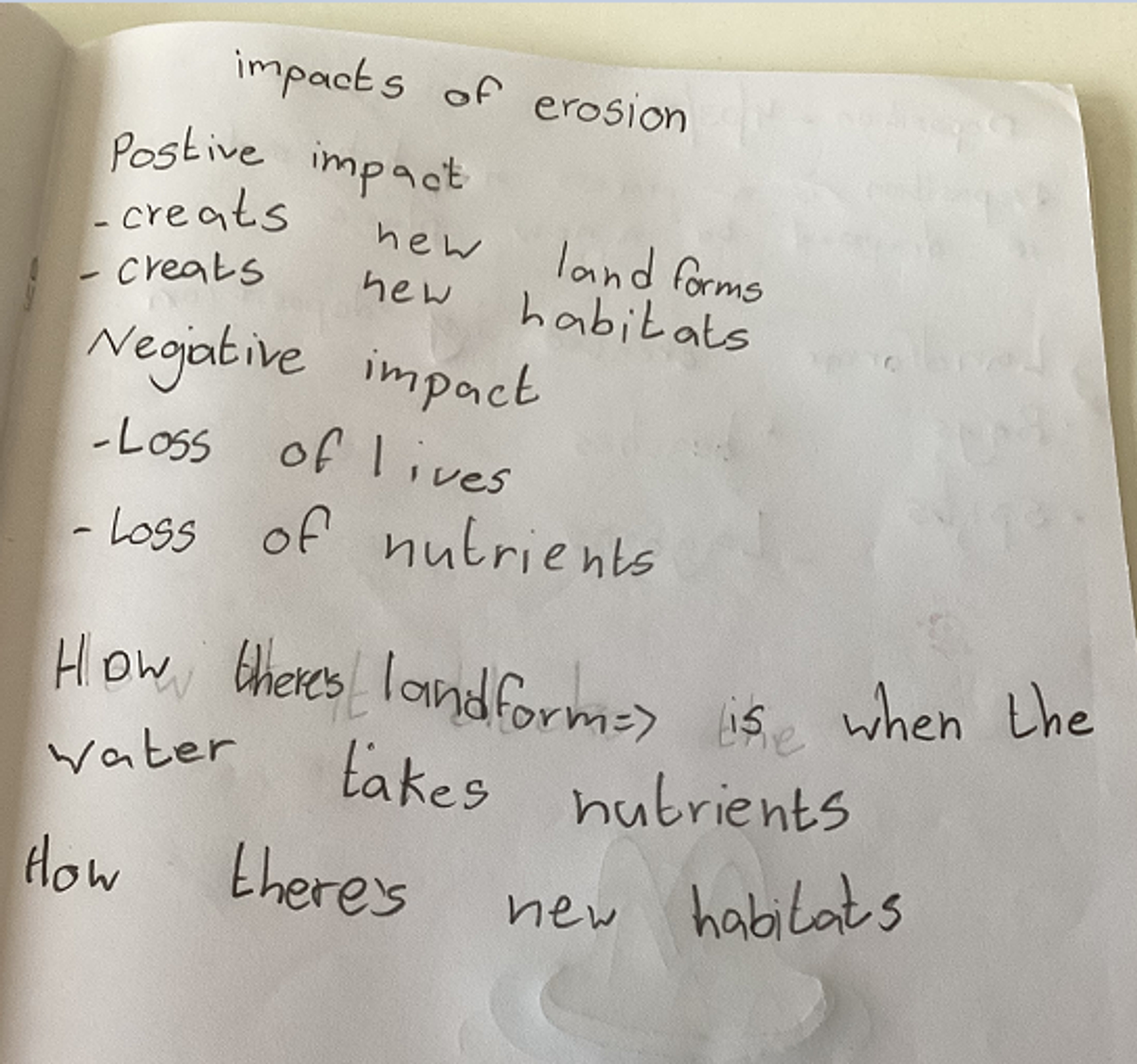 Weathering, Erosion and Deposition: The year 4 students learnt to define and explore a range of examples of weathering, erosion and deposition on Earth. Through questioning, predicting, videos, diagrams, photos and discussions, students discovered how these slow processes in nature positively and negatively affects our land and daily life. Students were challenged to verbally explain their learning about weathering, erosion and deposition to others to further consolidate their understanding.