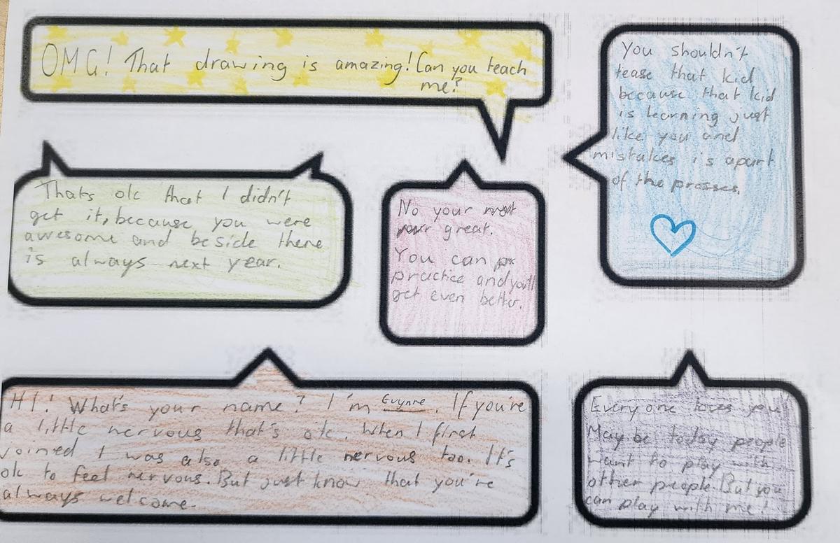 Year 4 talked about bullying and cyberbullying. We practised kindness shoutouts in different situations students might face online.