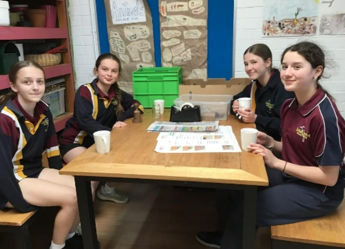 The year 4 & 5 students are being introduced to the citizen science project called the Aussie Bird Count. They watch Costa’s Top Tips for Bird Watching Junior Gardening Australia and volunteers from the Observe and Create group participate in the Aussie Bird Count. Other kids from this group make a Bird Nest Shop to help birds make their nests this Spring. The Grow team is busy sifting compost and adding it to a new corrugated iron raised garden bed which will be used to grow tomatoes this year. The guinea pigs are back from their holidays and students from the Animal group are making sure they are well cared for. The Harvesting group is picking lots of leafy greens and herbs for the kitchen. They are also organising salt bush leaves for dehydrating and making herb salt.