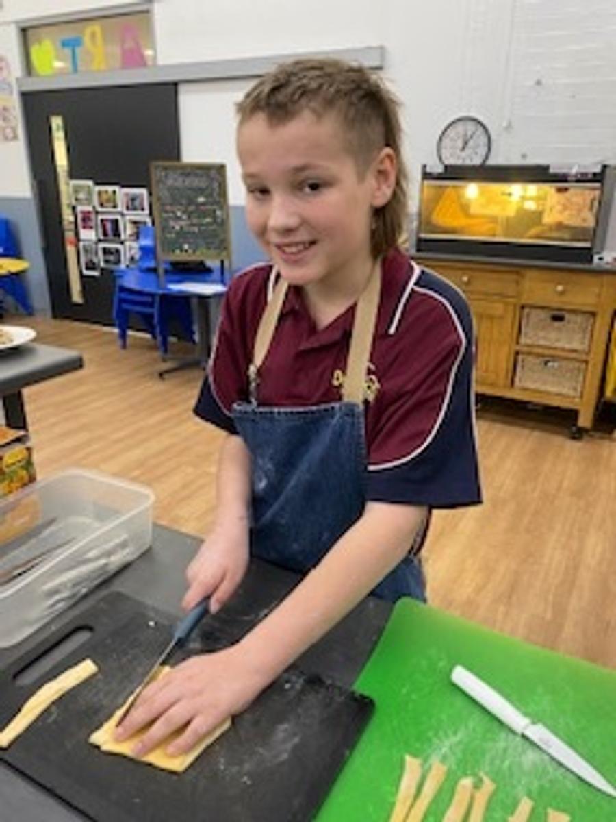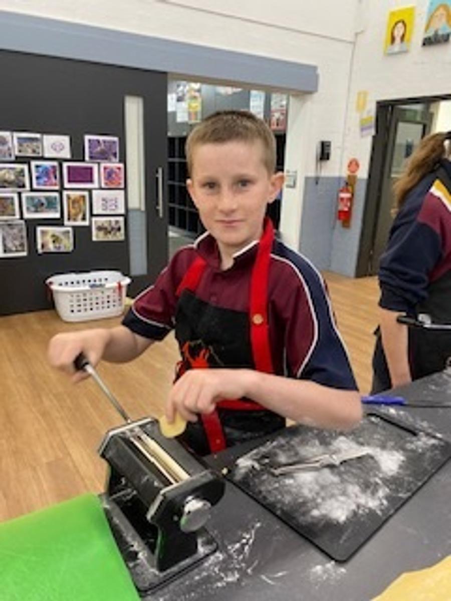 Term 3 has begun and kitchen classes haven't skipped a beat, leaping straight back in with hand rolled pasta and sauce. Making pasta from scratch is time consuming and labour intensive but incredibly rewarding as the kids have discovered it’s well worth the effort in terms of taste and texture. We have been making fettucine using a combination of the pasta rollers and hand cutting and complimenting it with a deliciously prepared sauce of either bolognaise or napolitana. This sauce is easy to adjust depending on your dietary requirements and available herbs and is easy to flavour using things that most people probably already have in their pantry. Kate has used a recipe from a food blogger called ‘RecipeTinEats’, but if you have a favourite grandmother's recipe then that will be awesome as well. We used dried oregano and parsley instead of basil in our sauce, as the basil in the garden is still growing, but any herbs will give the sauce a lovely boost. The finely dicing of veggies and herbs is really fine tuning the student’s chopping skills which have come a very long way since the beginning of the year.