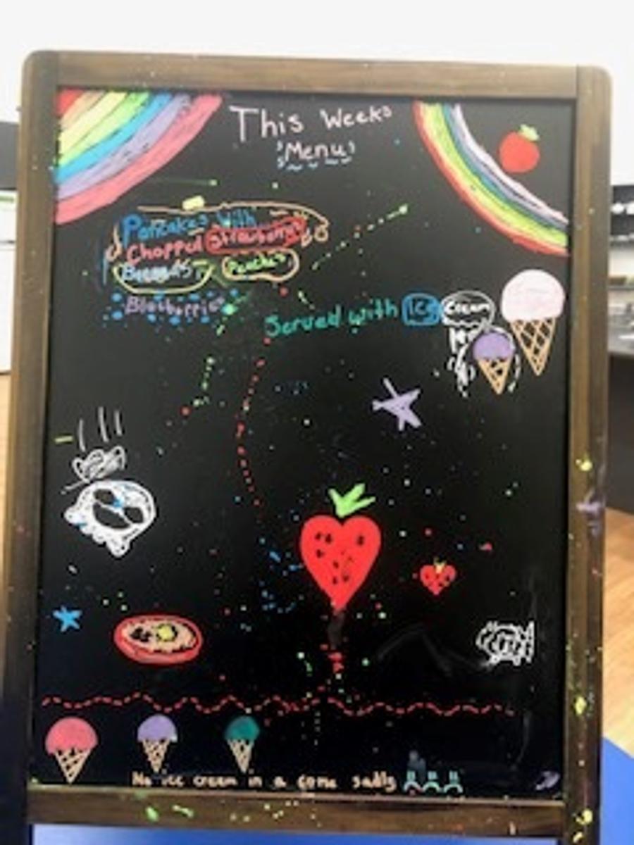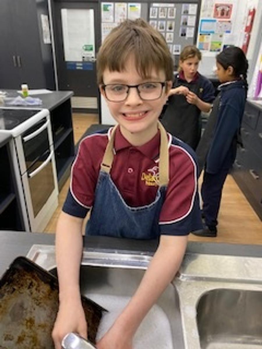 The grade 1s have also had a blast in the kitchen, preparing pancakes and fruit to serve with ice cream. Older hands helped to cook the pancakes as the benches are still a little high for small people, but those very same small people made short work of chopping and displaying their fruit on a platter and then setting the tables to sit and enjoy eating together. We had bananas, peaches, strawberries and blueberries, topped off with ice cream. The lack of leftovers said it all, hardly anything for the chooks, as it all went into tummies.....yum!!