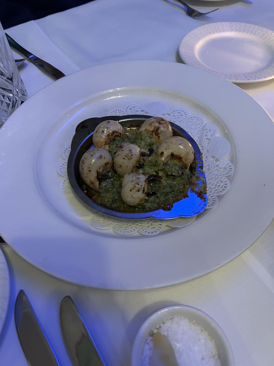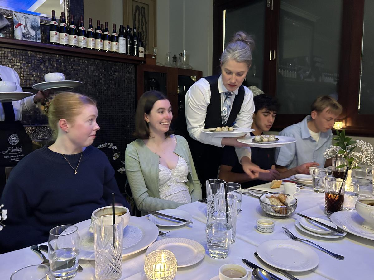 Pierre, the restaurant owner, is a former student from John XXIII, and he came out and greeted and chatted personally with the students. Students enjoyed a delicious truffle soup, and several students were brave enough to try the escargots – snails.
