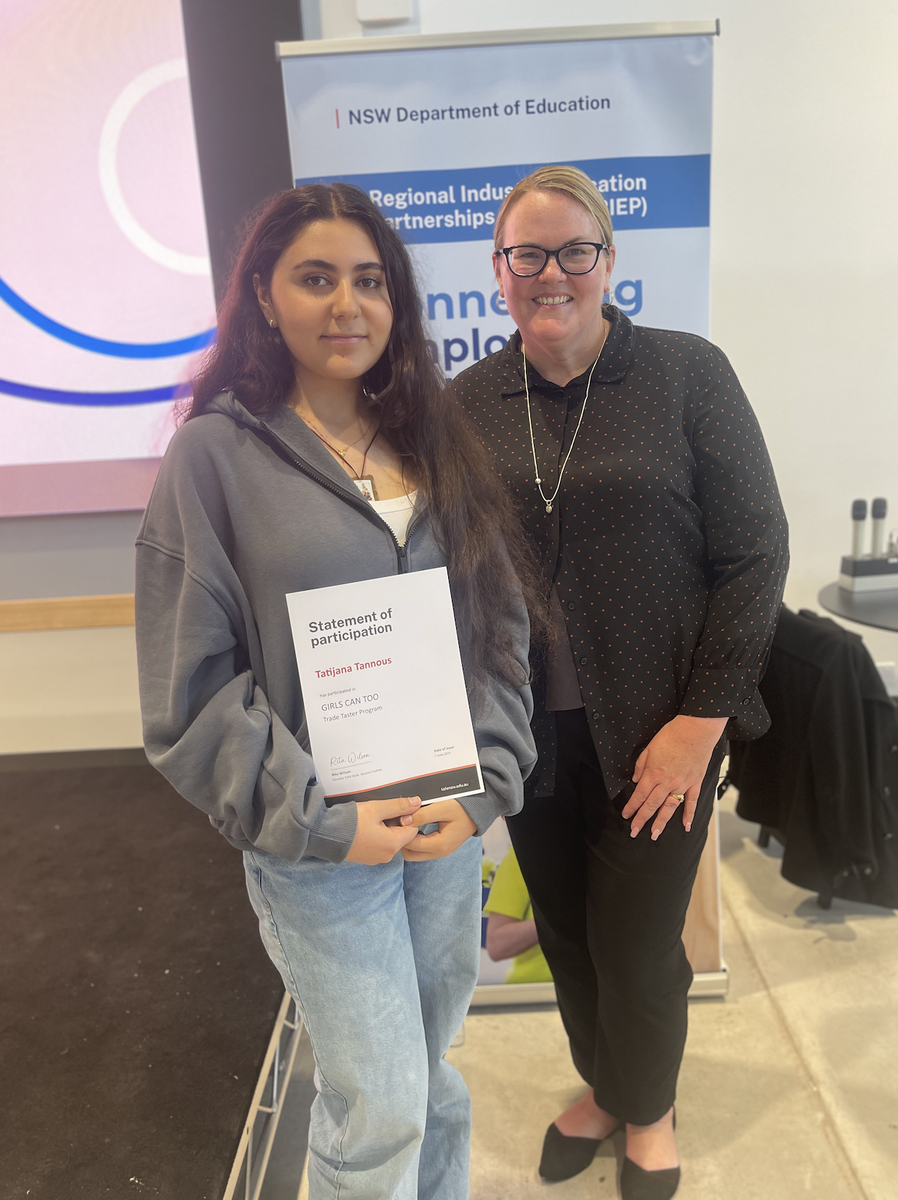Tatijana Tannous: "I had the amazing opportunity to participate in the Girls Can Too Program at Meadowbank TAFE for a week. During those five days, I explored a variety of trades, including plumbing, signs & graphics, carpentry, and painting & decorating. The experience was incredibly enjoyable and eye-opening, as it allowed me to consider different career paths I hadn't thought of before. Many of the activities, like welding, were things I never would have tried on my own, but I ended up loving every one of them. This program not only opened my eyes to a career path in trades but also equipped me with valuable new skills. I'm truly grateful for the experience, and any girls confused about what to do in the future should definitely take part."