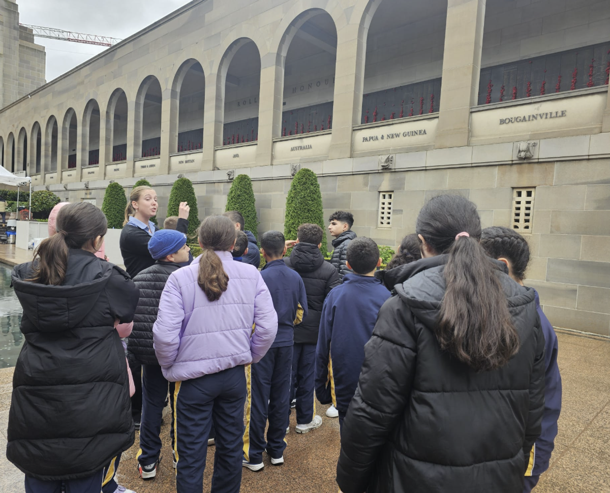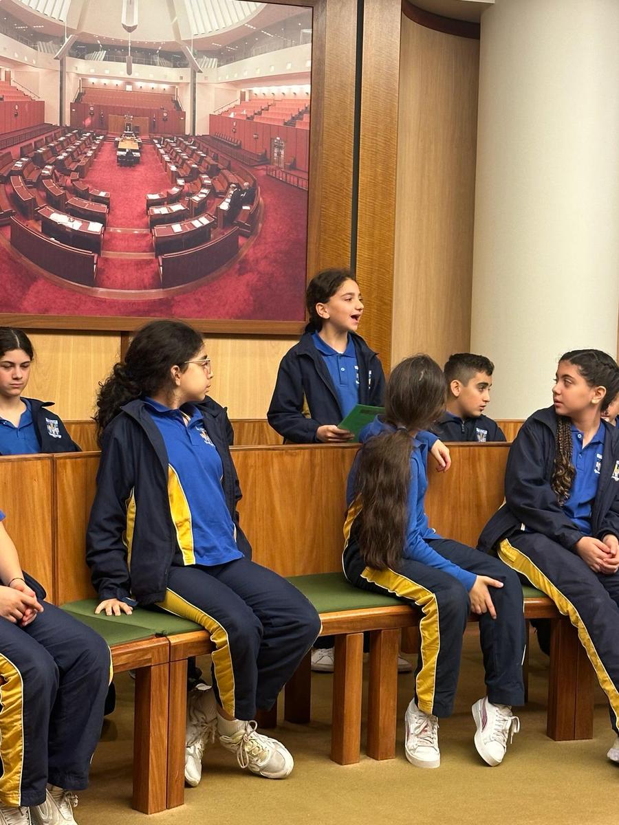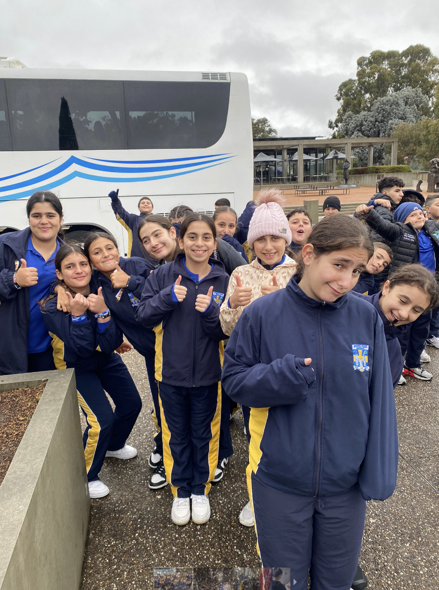 My name is Eleny Joukhadar, and I am in 6 Topaz. Last week, Year 6 students went on an amazing trip to Canberra! We visited lots of nice places. At Old Parliament House, we learned about Australia's government history. The National Museum showed us the history of Canberra and Australian life. At the New Parliament House, we found out how the government works today and saw some amazing things, like 2,700 clocks and 4,500 rooms! The War Memorial taught us about Australia's wars and had lots of interesting war items. At Questacon, we had fun on the slide and had the opportunity to shop. It was such an exciting trip where we learned a lot about our country's history and government. The memories we made with our teachers are unforgettable. We are very thankful to our teachers for making sure we had a safe and fun time in Canberra!