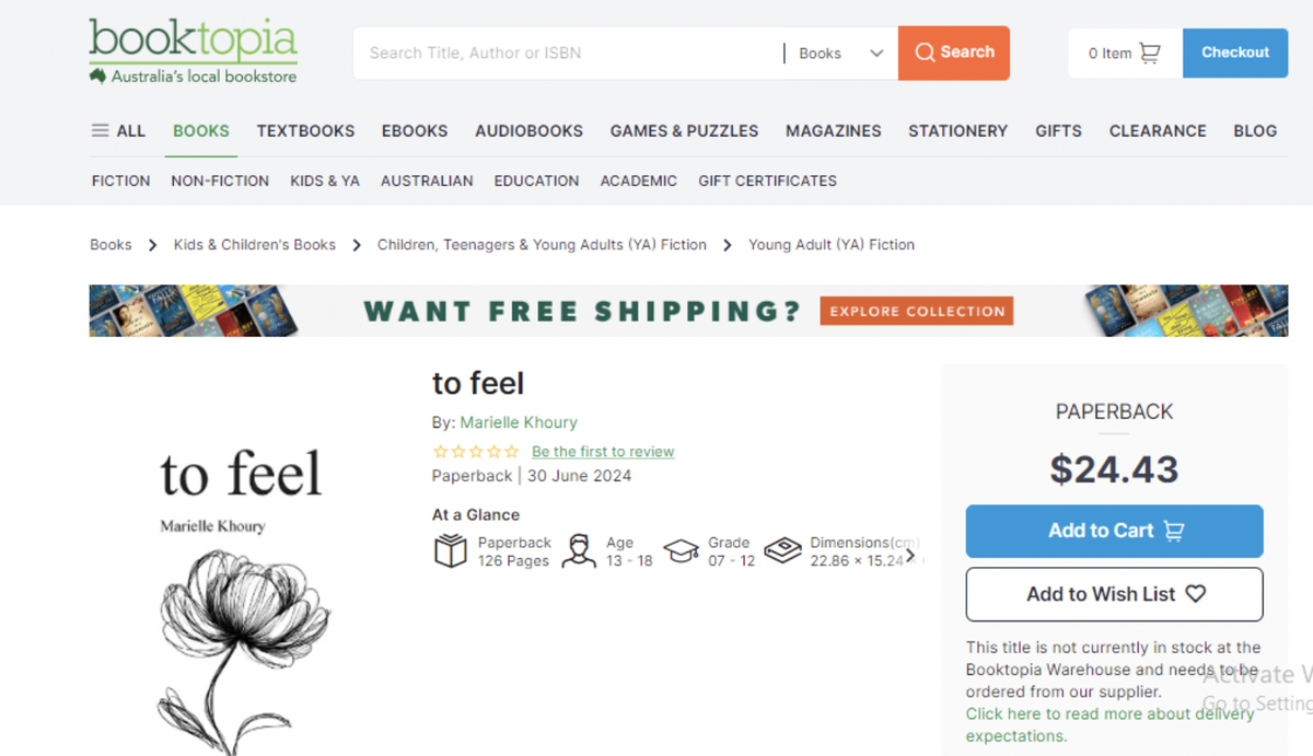 I originally wrote it during Year 9, for the Enrichment Project. This combined my love of writing and my childhood dream of writing a book myself. After I presented it at the Enrichment Showcase at the end of the year, almost everyone who read the book told me I should look into publishing, so I did. I spent almost a year and a half talking to different publishers but noticed they all wanted more money than I could give. So, I decided on self-publishing, and now I’m here. My book, ‘to feel’ is coming out on the 30th of June – this month! – and is being sold on Amazon, Booktopia, Fishpond, Barnes and Noble, The Nile, James Bennett, and will be distributed to some public libraries, and of course, MCHF Learning Centre!