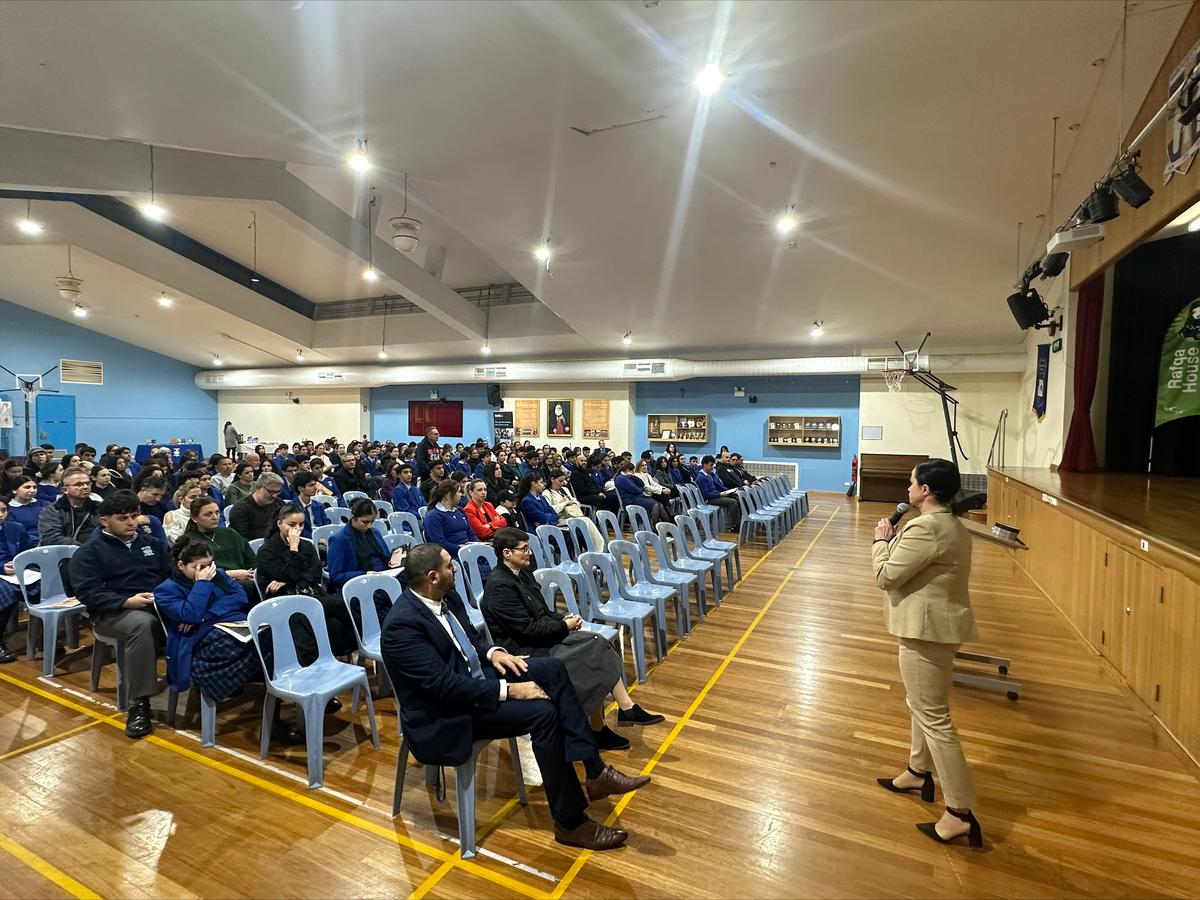 Dr Andrew Charlton MP, Federal Member for Parramatta, invited our College to perform at a Seniors Morning Tea which he hosted on Thursday 20 June 2024 at The Salvation Army (Main Hall), North Parramatta. Select members of our Primary and Secondary Choirs, led by Mr Sedicol and Ms Sassine, represented the College and performed for the guests including singing the Australian National Anthem. These students represented the College with pride and were congratulated by Dr Andrew Charlton. Thank you to the students for performing and to Mr Sedicol and Ms Sassine for their efforts preparing these students.