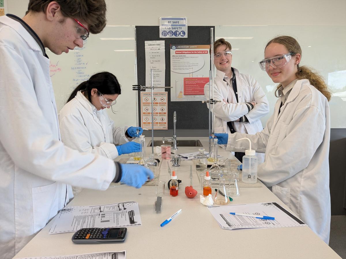The Years 11 and 12 Chemistry classes have been working on their glassware technique. There is an art to how to rinse glassware correctly and completely, to ensure the best accuracy is possible while saving resources.