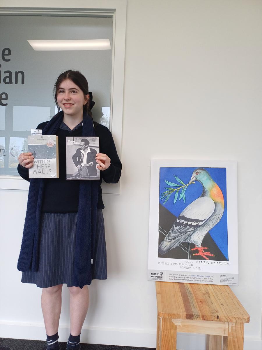 Ciara was awarded the prestigious prize along with a student from Mexico, a team from the United States of America, and a student from Hungary. She presented her project at a Yad Vashem conference in November, 2023. Ciara’s project provides us with inspiration to have the courage to care for those around us, and bring an offering of peace to areas of conflict.