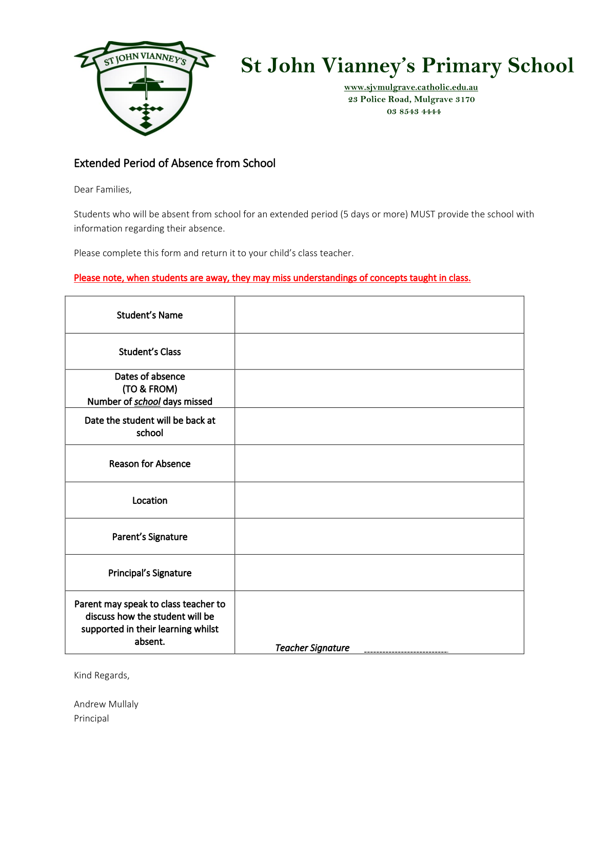 Extended Period Of Absence From School