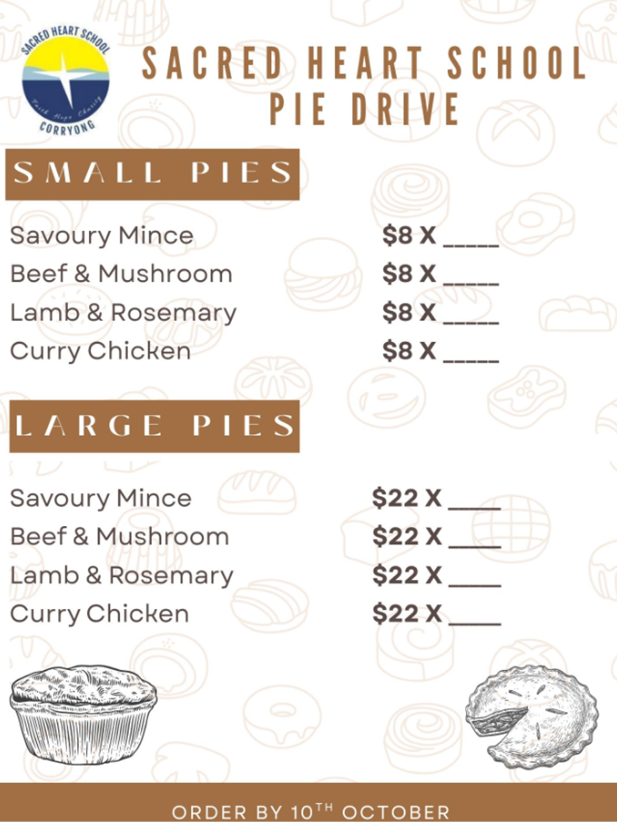 Our Parent & Carer Community group met twice in Term Three to implement the new format, which includes a mixture of Parent & Carer (or P & F) matters as well as School Advisory Council work. Thank you to all in our community who give up their time to participate in these meetings. We are still working to confirm the dates for the Term Four meetings, which I will share as soon as confirmed. Our P & C are again running a Pie Drive after the success of the one earlier in the year. Orders are due at the end of Week One. If you need another order form, please get in touch with the office so we can send another one home with your cherubs.