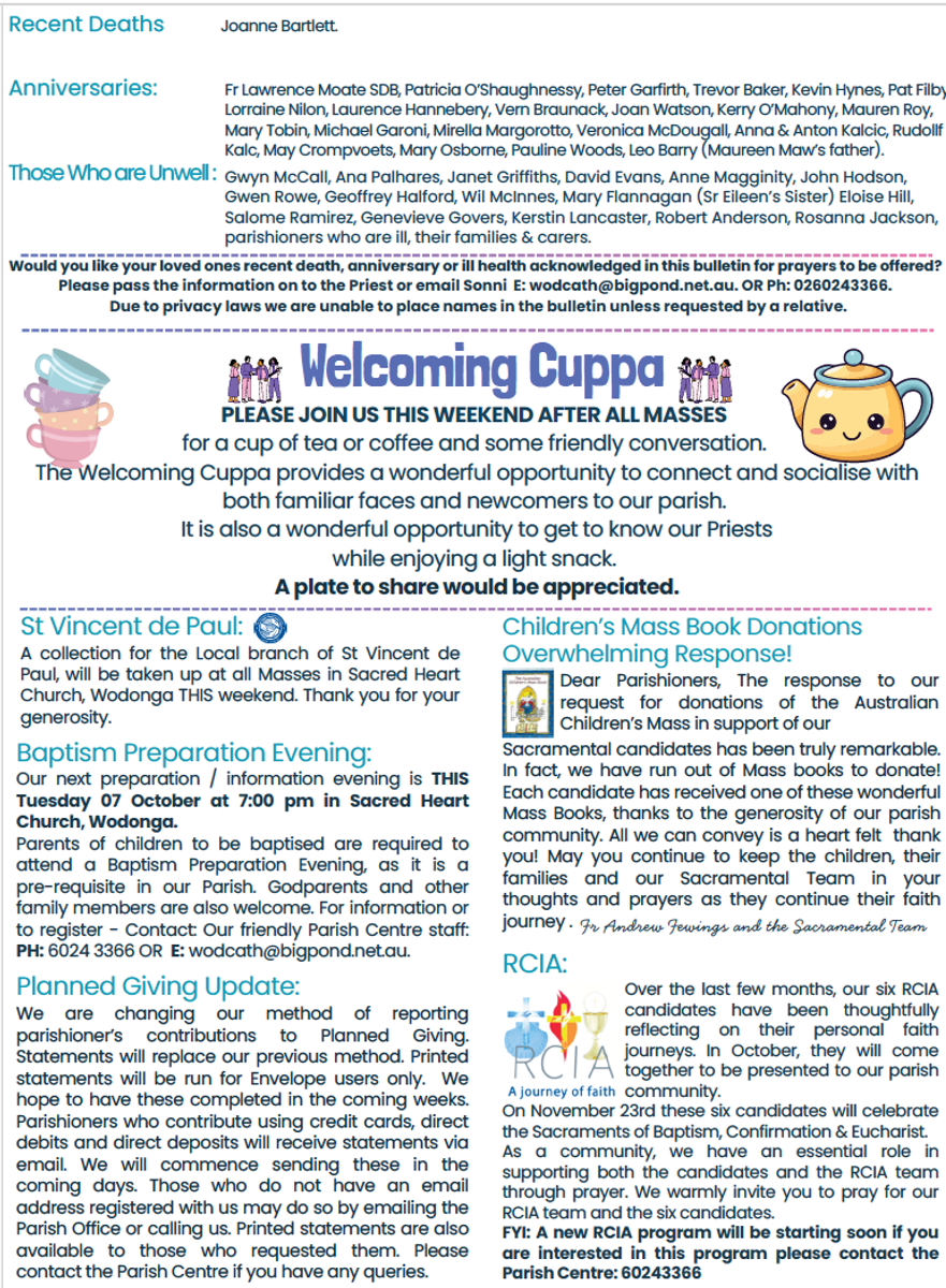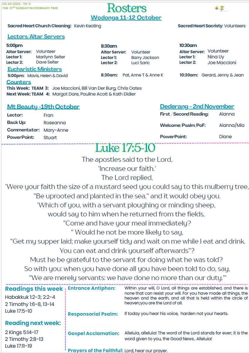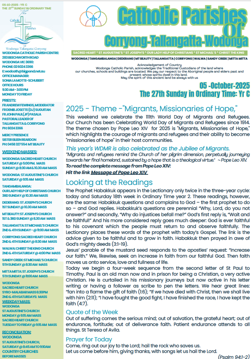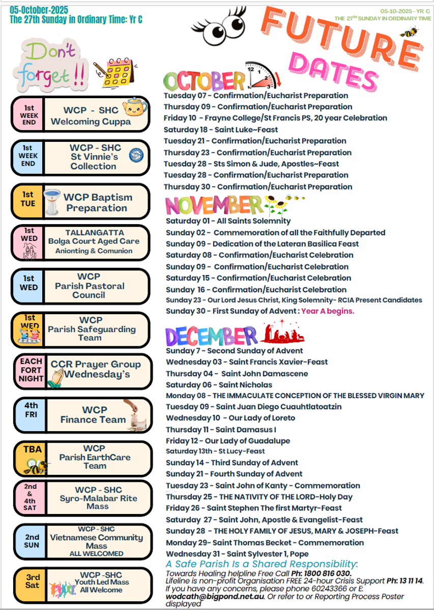 Information/Bookings: Phone Mercy & James 0409 183 676 or