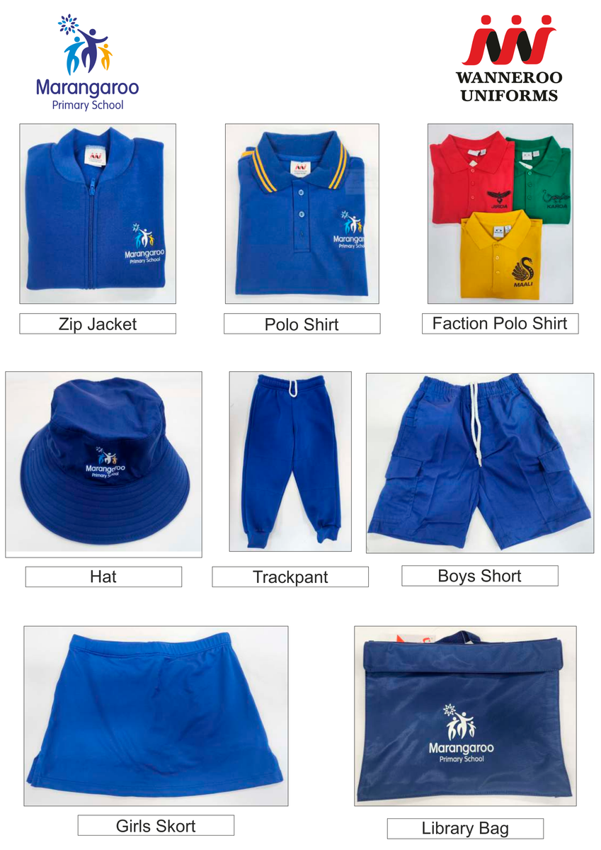Please find attached the Marangaroo uniform images and a uniform order form. This information can also be found on their website.