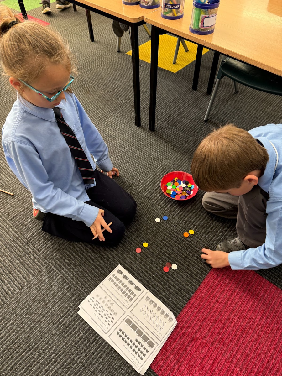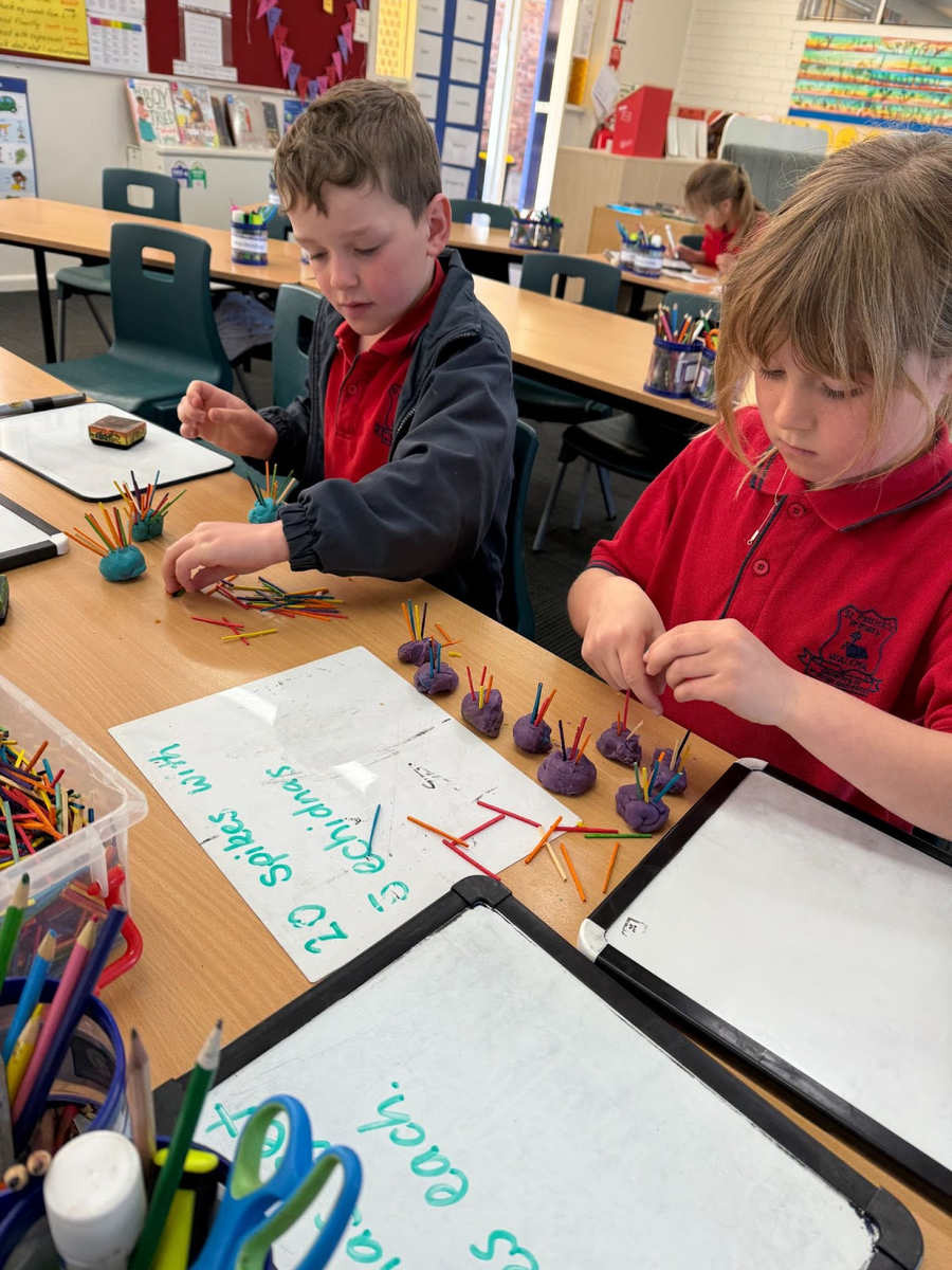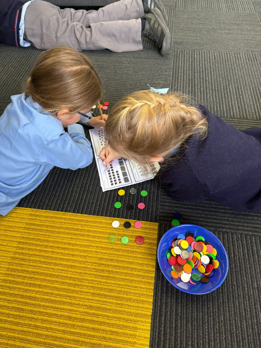 In Maths, Stage 1 has continued with making groups but this time with a focus on dividing groups into equal and unequal shares. Using the previously taught skills of skip counting and arrays have enhanced our knowledge and enabled us to subitise {identify without counting}mentally. The use of concrete materials at this stage is imperative to being able to fully understand why the skill of division is important {nobody wants to have less lollies than others!} and to help solve open-ended tasks such as I have 20 lollies that need to be shared. By answering this question, our students will identify number facts in numerous ways, illustrate their working out and show evidence of equal/unequal groupings. The next step is being able to complete division problems without the use of concrete materials. It is at this stage that students often show difficulty as the representation of the pictures may not be in a formal array, thus stretching them to use more complex strategies.