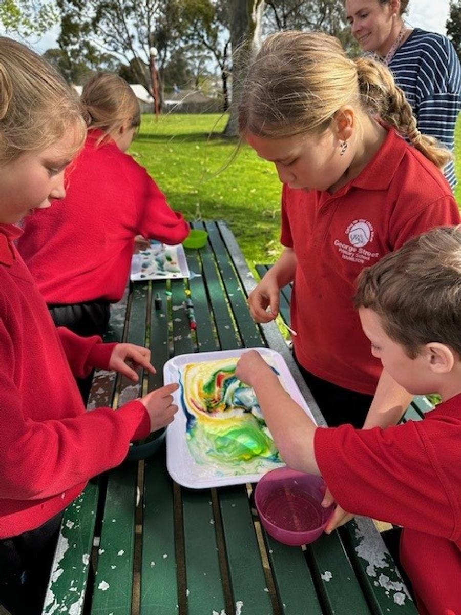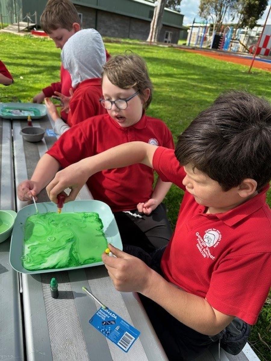 Science lessons have been a highlight this term! We have been investigating forces in several fun and hands-on ways. The students loved comparing the difference between full cream milk and light milk when food colouring and detergent were added. We discovered that the full cream milk created a faster, more visible reaction. We also explored surface tension using water, pepper, and detergent. It has been fantastic to listen to the students’ discussions as they reflected on their investigations.