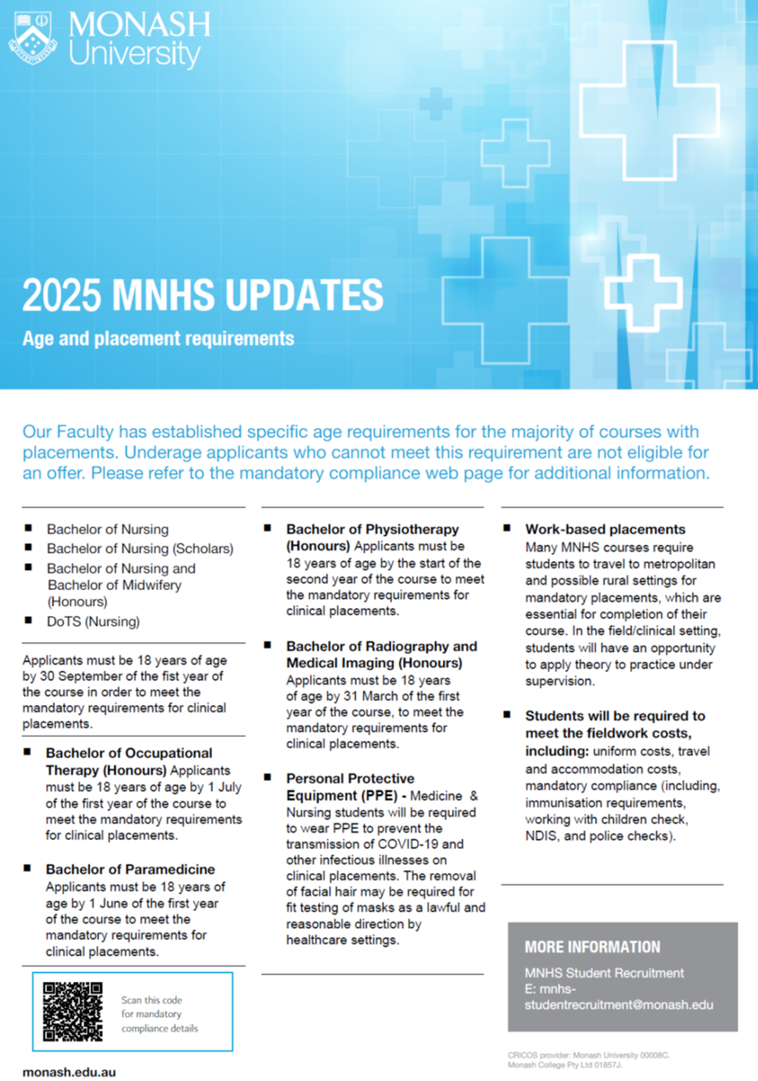 The best way to meet the prerequisites requirements for Monash undergraduate courses is by undertaking them via your VCE or equivalent Year 12 studies.