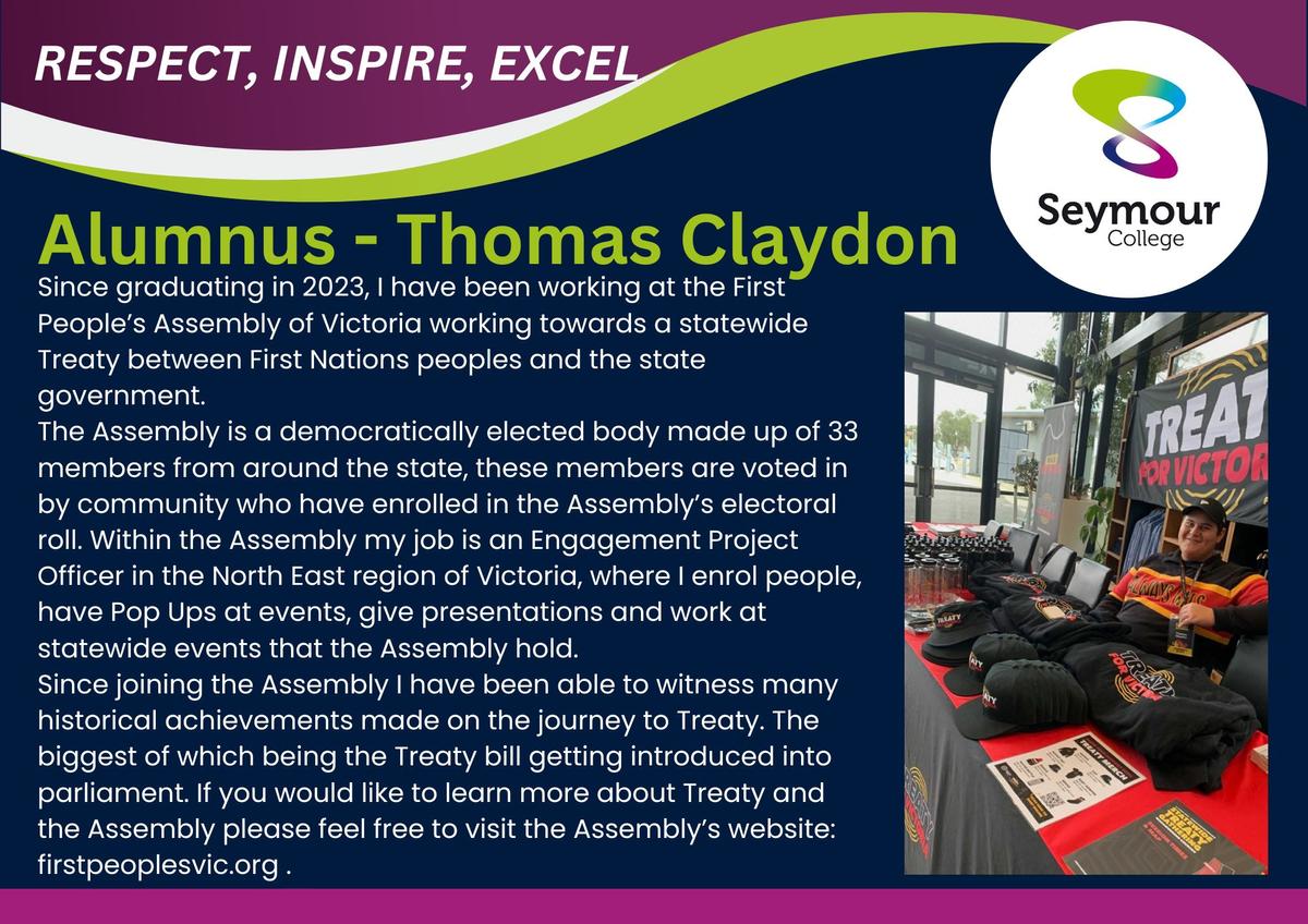 We enjoy celebrating our former students and following their career pathways. Please see Thomas Claydon's journey below.