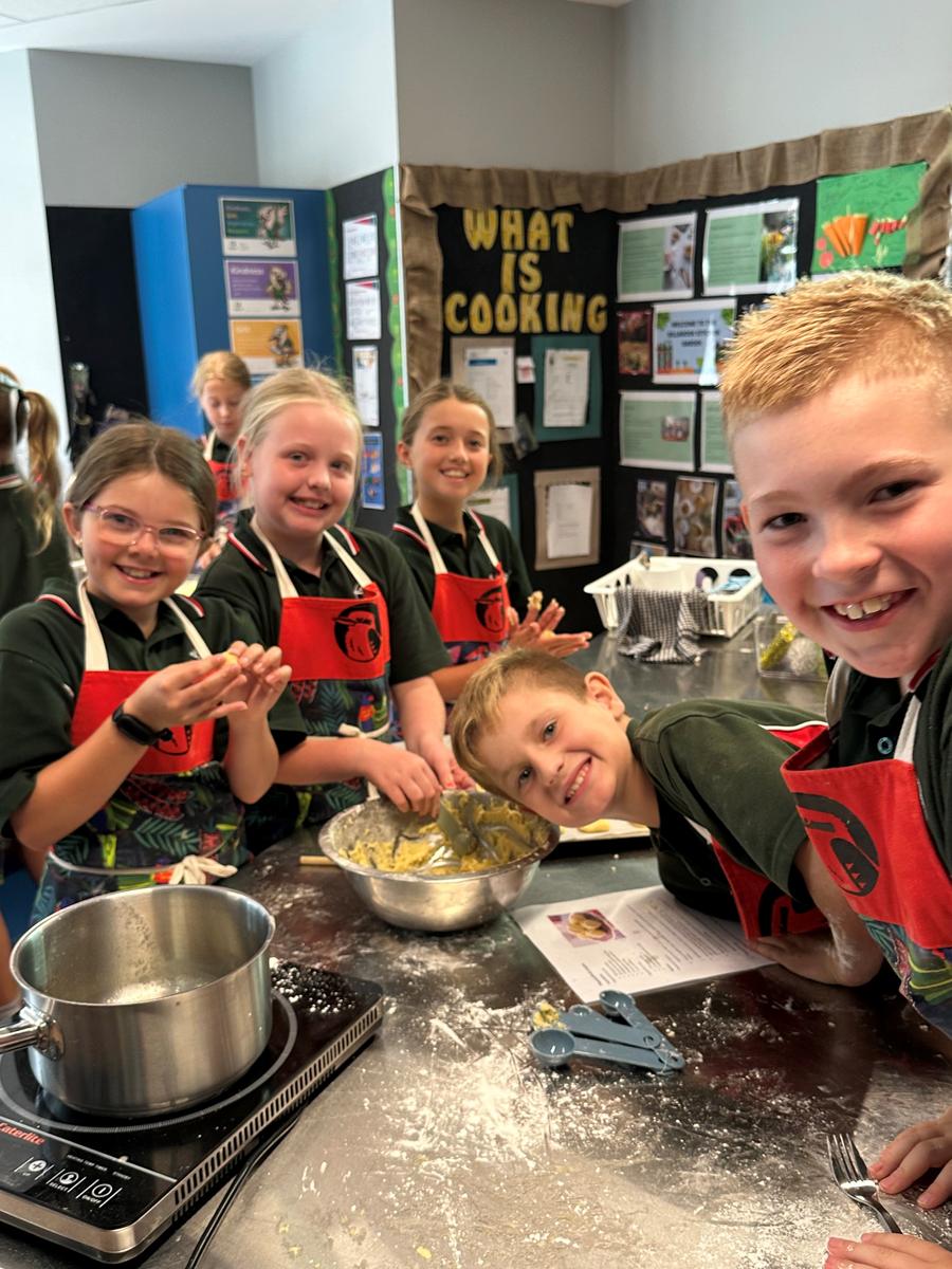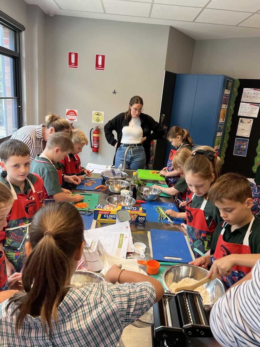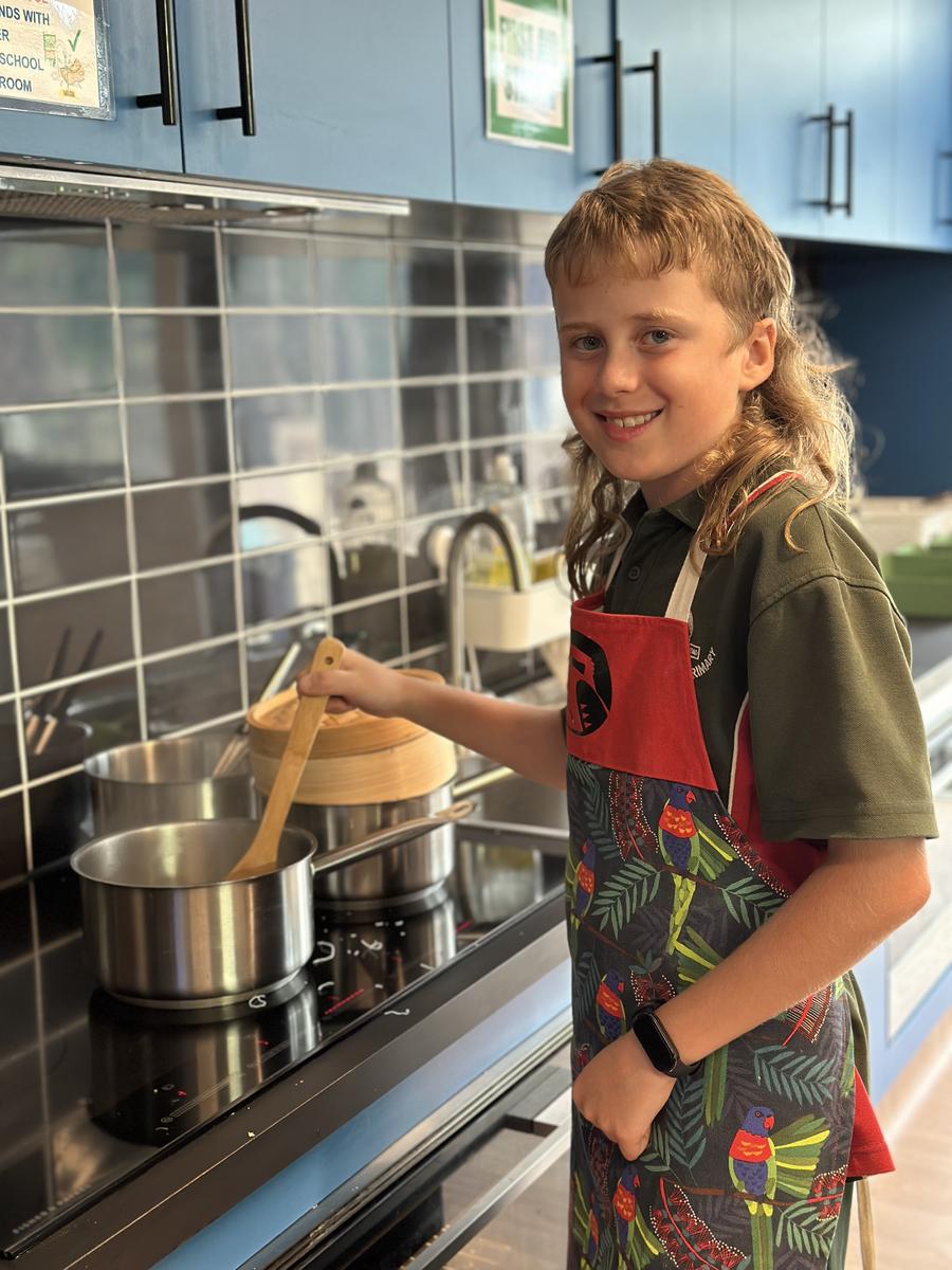 Our Kitchen Garden program has returned with our Year 3 and 4 children participating in gardening or cooking lessons last week. It has been wonderful to see the children so thoroughly engaged as they’re working with the parent and grand parent volunteers to prepare the garden beds or cook a delicious two course meal. It’s been great to witness how confident the Year 4s are after their experiences in the kitchen last year and how excited the Year 3s have been to cook and share a meal together.