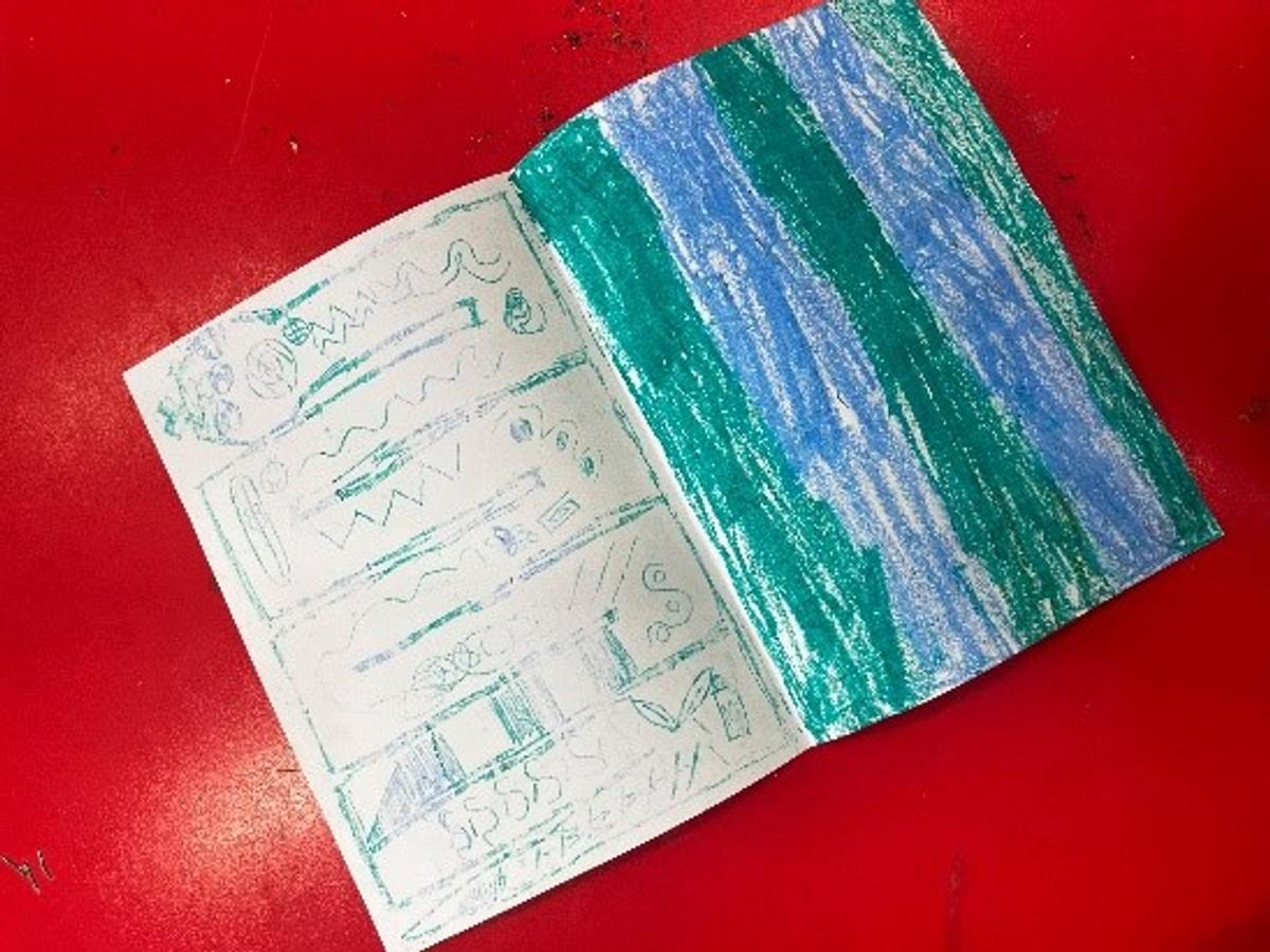 Rather than imitating specific artworks, students were encouraged to take inspiration from the way artists share stories, culture, and connection to Country through their work. Inspired by Bree Buttenshaw, students created oil pastel transfer prints, layering shapes and symbols in bold, vibrant colours.