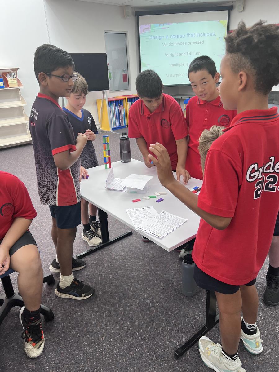 Then Scottie J and Carly gave each group a small box of dominoes. With these dominoes we had to create a domino run that had to include ; a left turn, a right turn, multiple levels and a surprise feature. This activity taught us about being patient, working as a team, persistence and determination.
