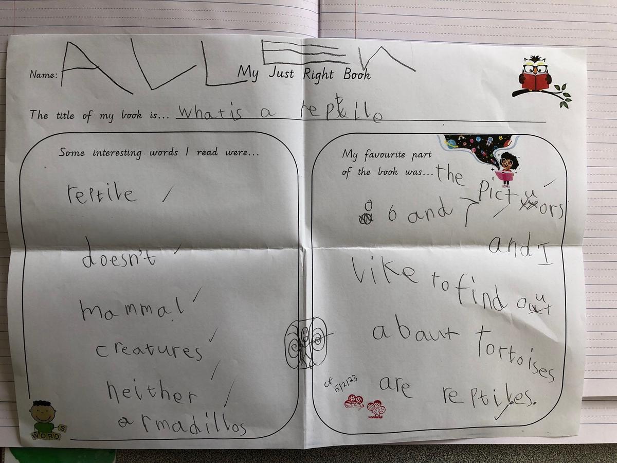 An important aspect of learning to read is praising children’s repeated attempts. Praise can be specific, for example, “Well done on re-reading that sentence, you worked out that word by yourself” or general praise such as “You are trying really hard, well done.”