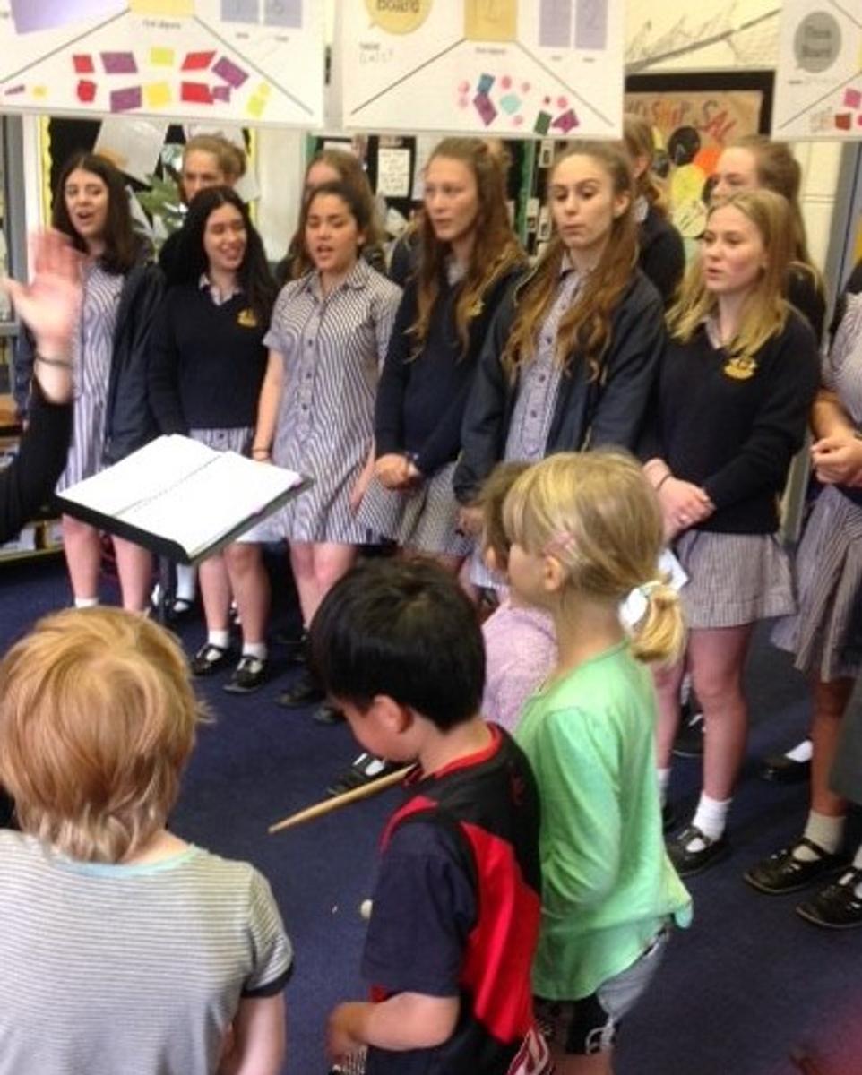 On Monday 28 November, the Junior Choir visited Merri Creek and Northcote Primary Schools to share their passion for singing. They walked to both of the schools and were truly on tour, hauling a keyboard, amplifier and more around with them. They performed to three Foundation (prep) classes at Merri Creek Primary and to five classes from Foundation to Grade 2 at Northcote Primary. The students loved the choir and many came up for hugs and to meet the “Rockstars” after their performance before recess and lunch. Their repertoire included pop songs, a lullaby from the Torres Straight Islanders, musical theatre and a cappella canons. In a few of the songs students from the audience joined in with singing and percussion. The students that went on this excursion have been working hard all year. It was a great day of bonding and musical excellence.