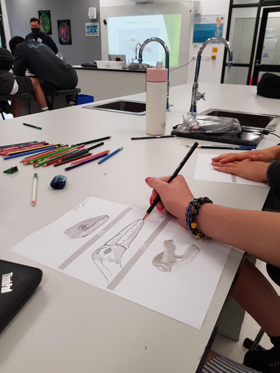 The second incursion happened when we returned to onsite learning and we took on the job of paleo-artist where we had to draw an animal based on just its skull and small amounts of information from related species. This allowed us to see how fossil evidence can be used to determine the key features of extinct animals, which has helped us a lot in our PBL where we are creating case studies for 2 extinct animals!