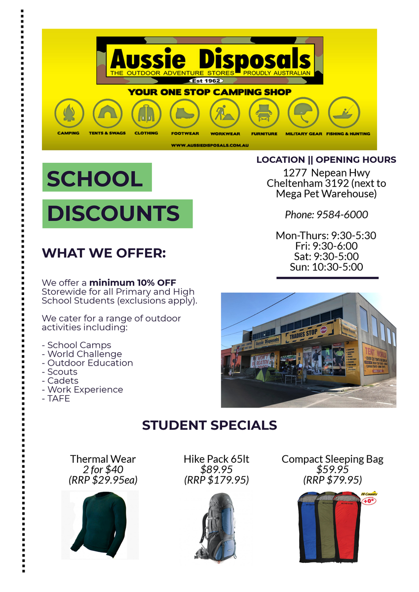 Aussie Disposals offer school discounts of 10% on certain products
