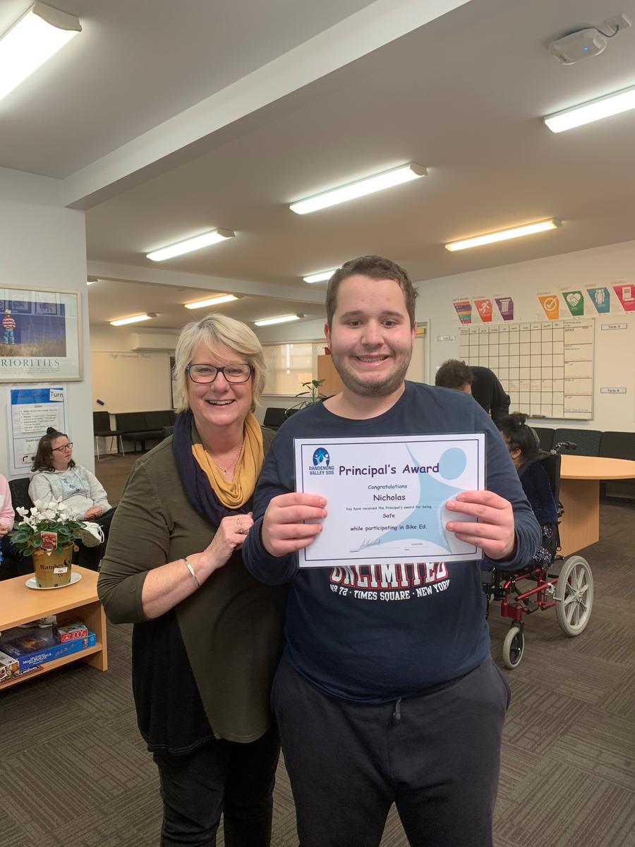 Nicholas received this award for being SAFE while participating in Bike Ed.