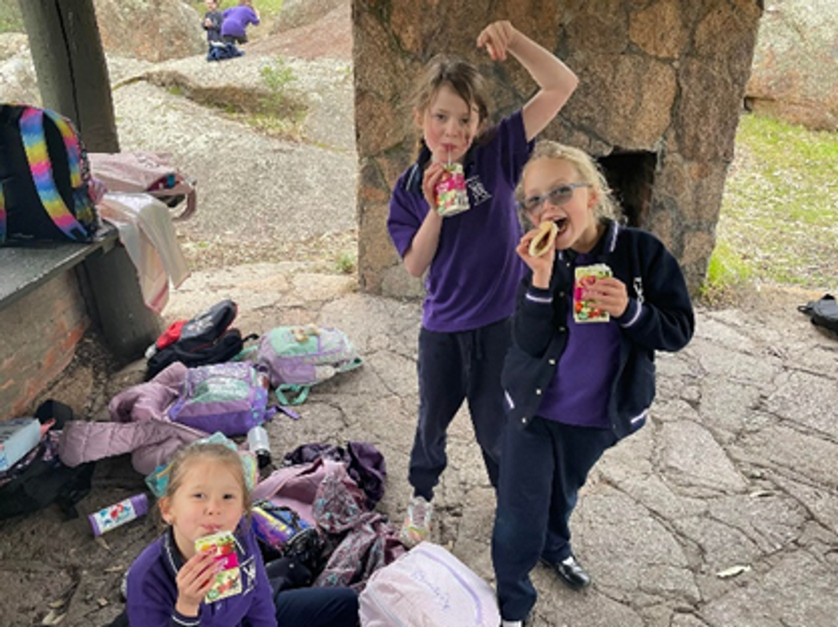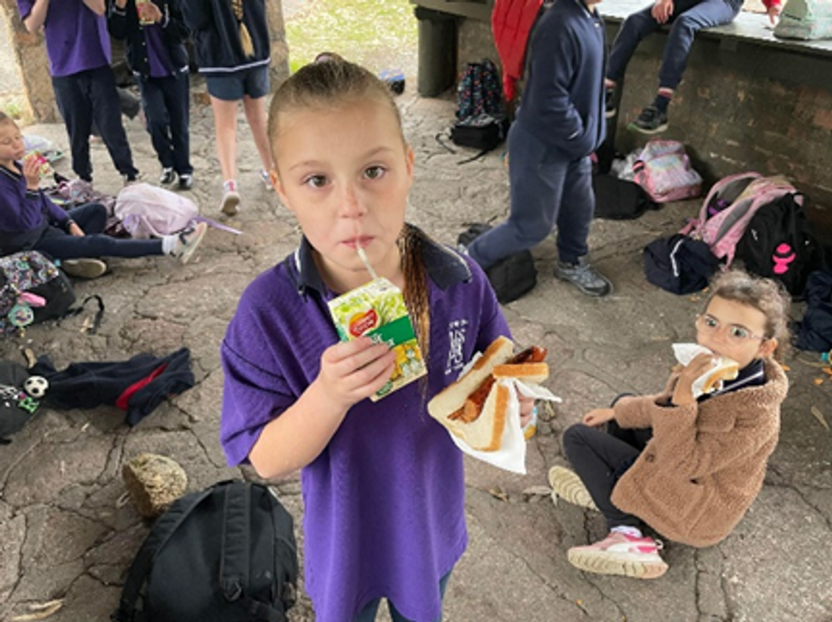 After much walking, climbing and exploring our young bushrangers needed some much-deserved lunch. Sausages and bread along with juice boxes were on the menu.