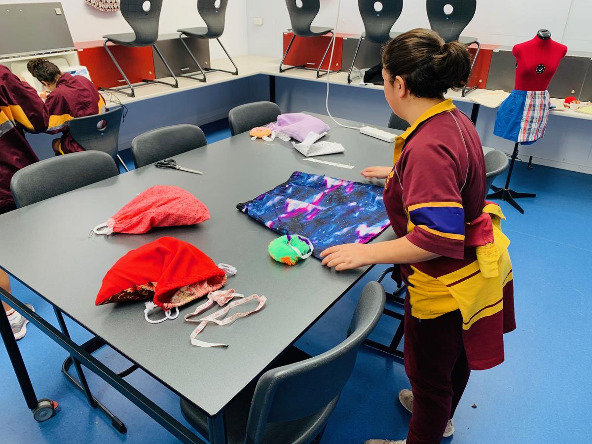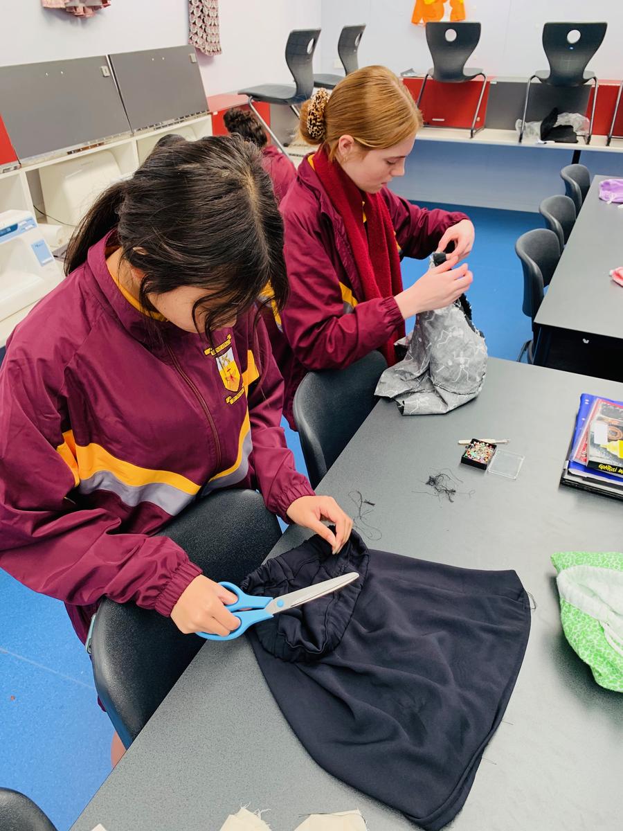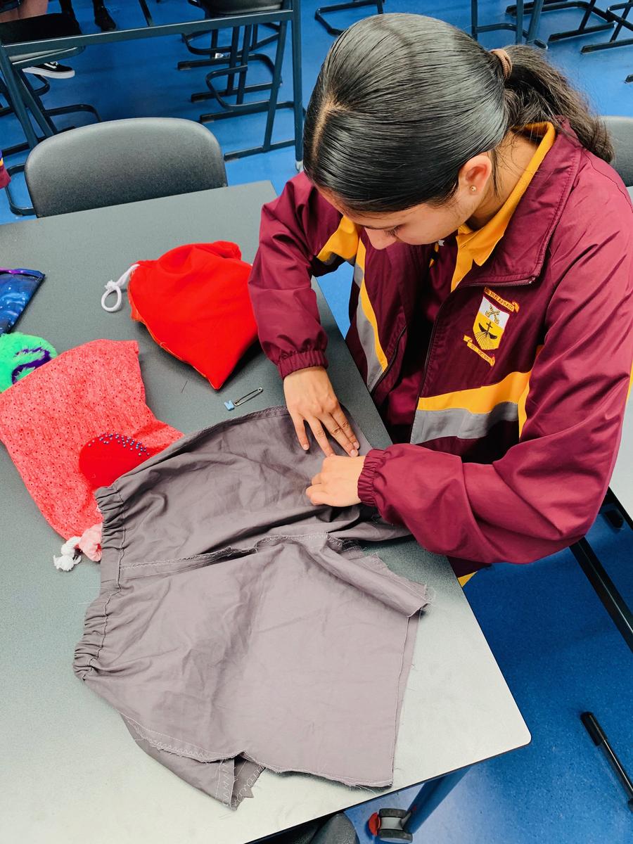 The Year 9 Textiles subject is titled ‘Fast Fashion’. This over-riding concept takes students on the journey of designing and making a hand-stitched pin cushion, sewing kit bag, Fast Fashion skirt, shorts or pyjama and then a sustainability project where an existing garment item, otherwise destined for landfill, is repurposed or refashioned to give it new life.