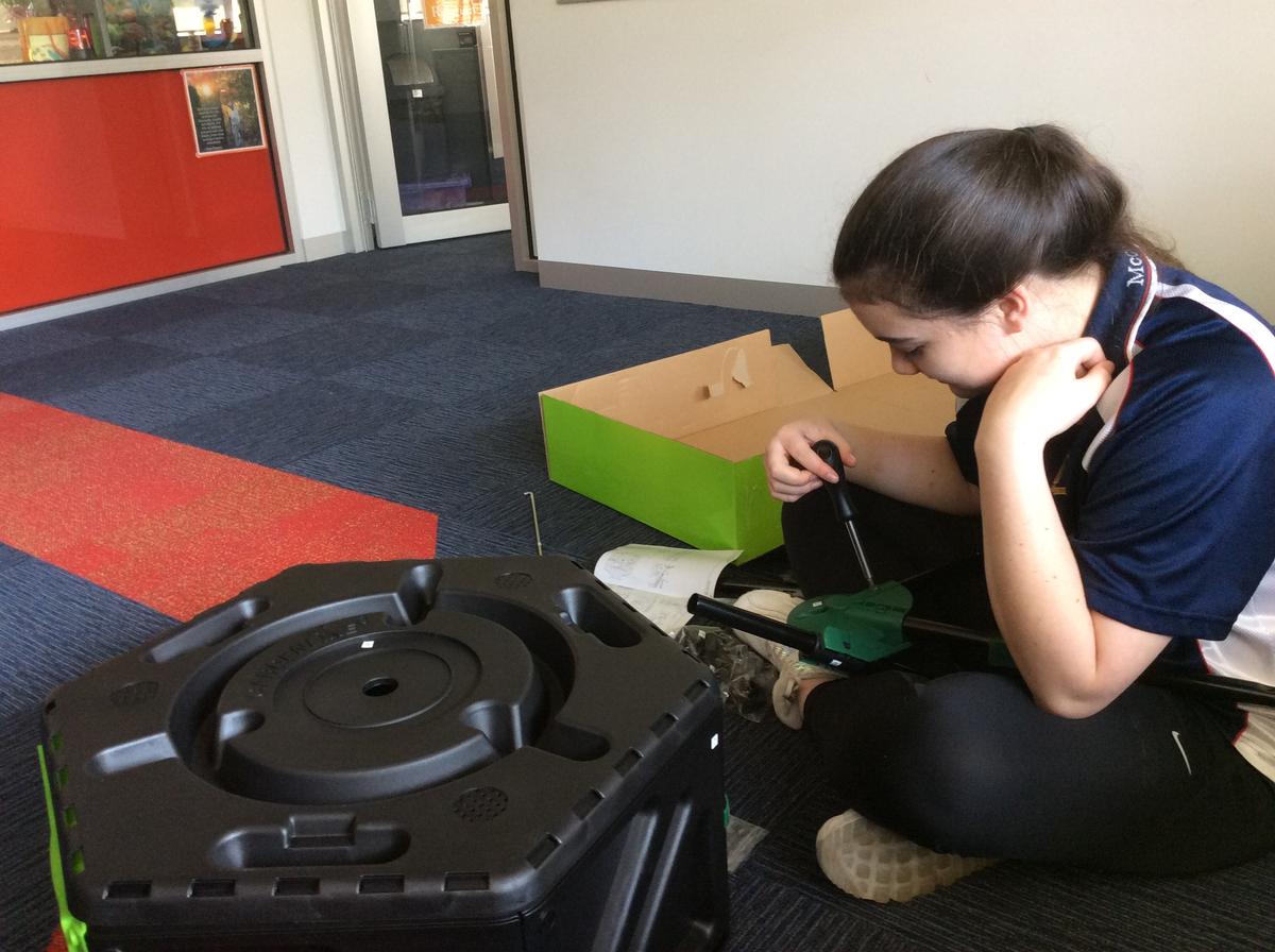 After viewing episodes from ABC TV's War on Waste Series, students decided we should take action in the college to reduce our waste. Their efforts to date have involved the upcycling or reuse of unwanted furniture and garden items, the purchase of a Bokashi Bin for our kitchen, a mini compost bin for within the garden beds and a Rotating 130 litre Compost Bin.